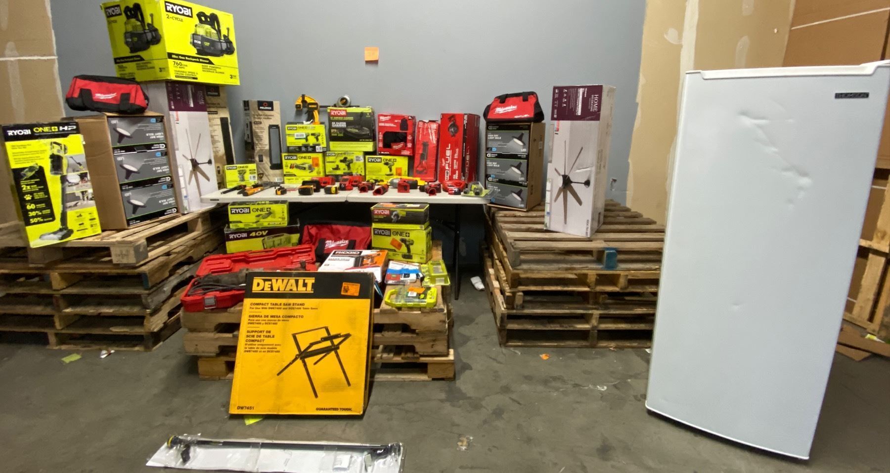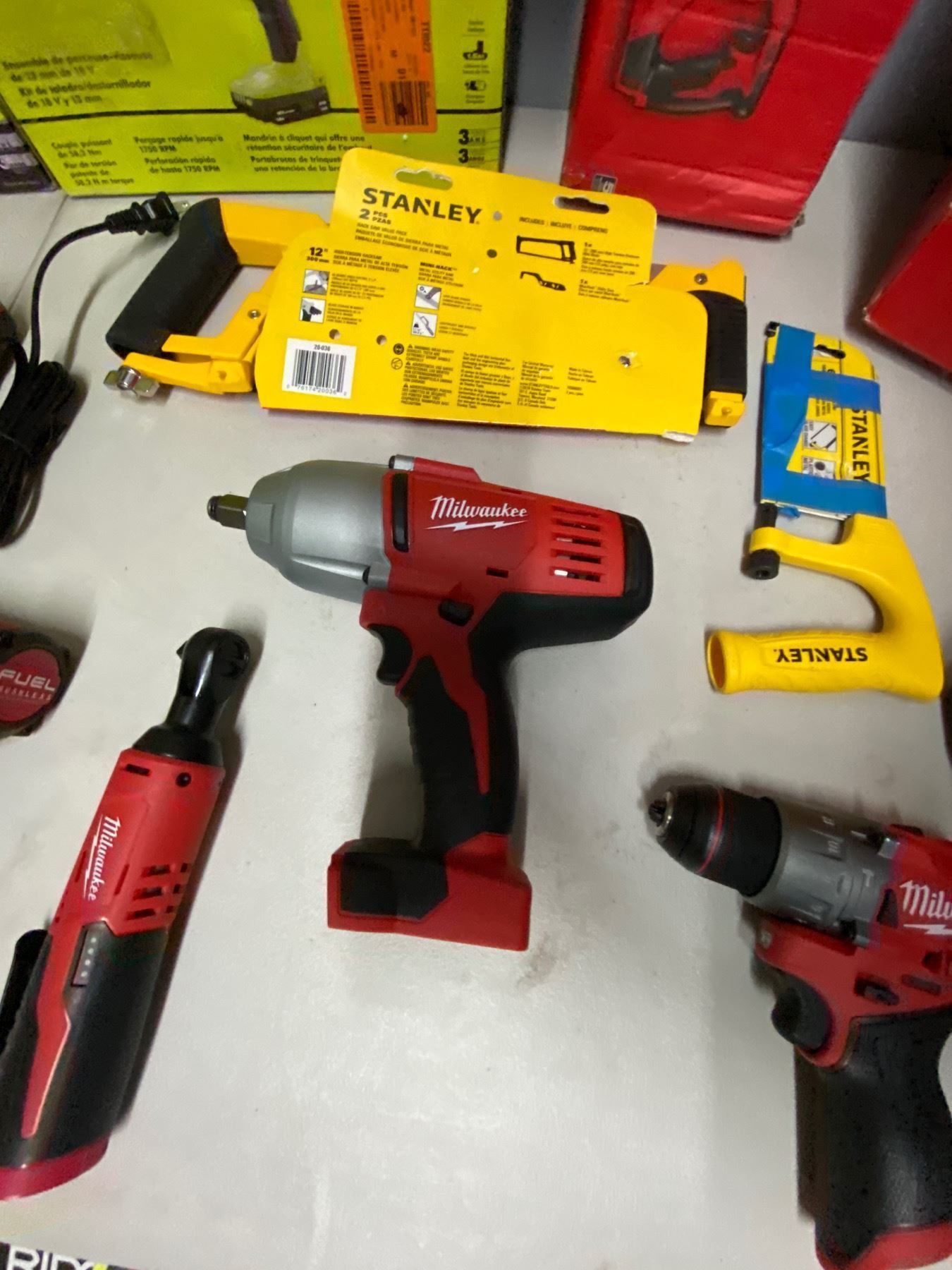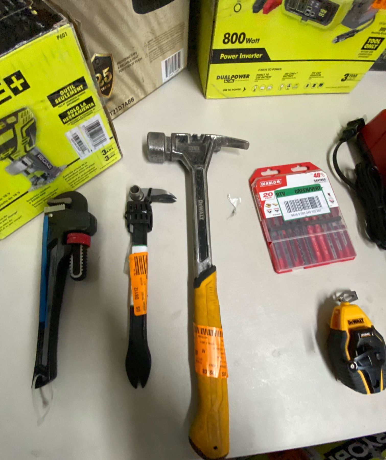 Lote de Herramienta y Home Improvements de la tienda Home Depot. Lote te incluye sopladora de mochila Ryobi, focos para hogar, aspiradora Ryobi, multitool Ryobi, taladros Milwaukee, mesa para sierra Dewalt, Skilsaw Milwaukee, suéter con calefacción Milwaukee, calentones, sawzall Milwaukee, batearías de marcas Dewalt y Milwaukee, taldadros Ryobi, roto martillo Ryobi, y mucho mas.