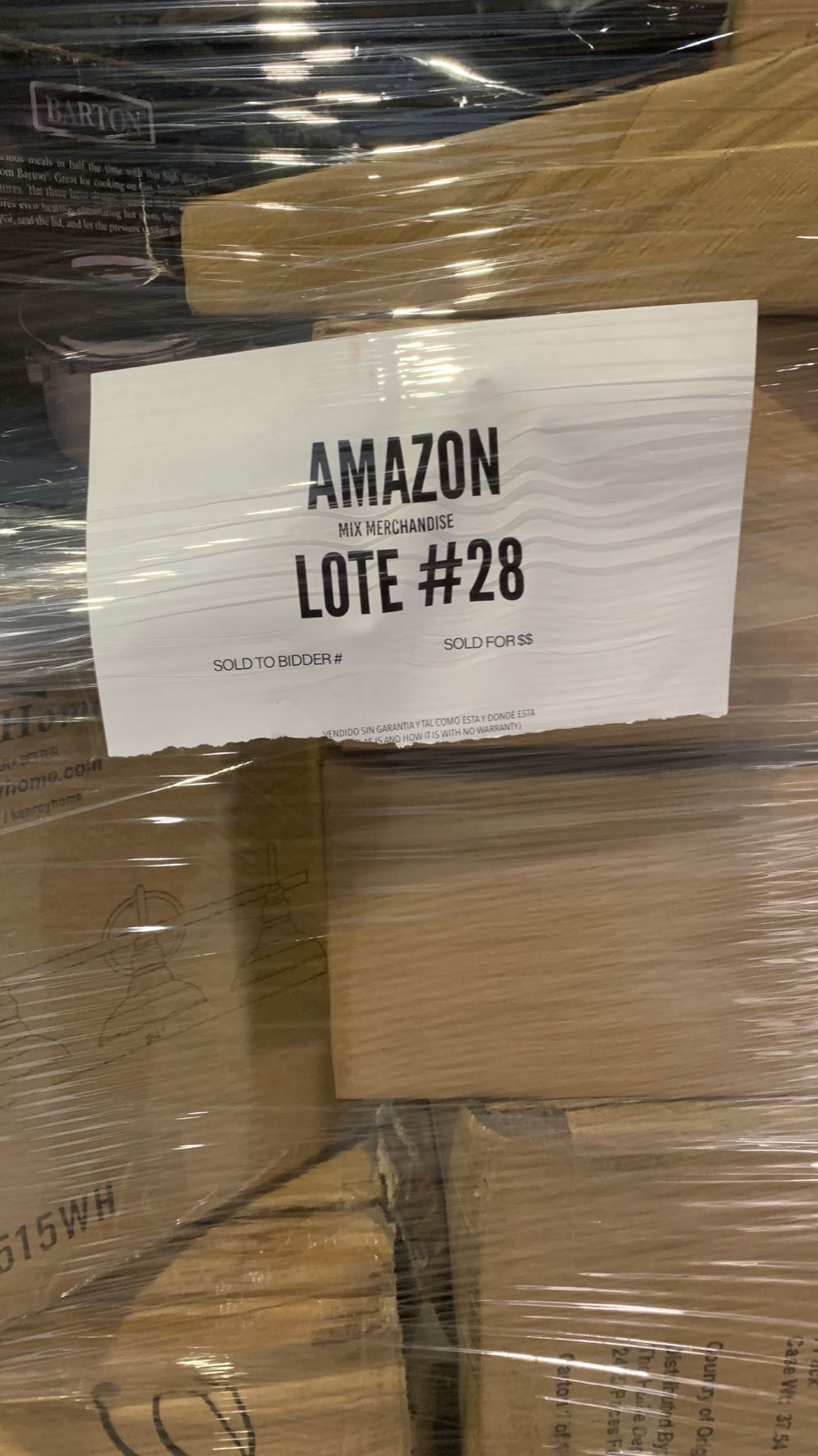 Bienvenidos a nuestros eventos de subasta de pallets, primero que nada te hacemos presentes nuestros términos y condiciones en cada evento de subasta presente. Al someter una apuesta u oferta en cualquiera de nuestros pallets/lotes estás aceptando nuestros términos y condiciones. Toda nuestra mercancía disponible a la venta en subasta es clasificada como retornos, liquidaciones y sobrecargo de mercancía. La mercancía presente puede que esté usada, dañada, incompleta, inclusive totalmente nueva. No ofrecemos garantía, intercambios ni devoluciones, la cual manera todas nuestras ventas en subasta son finales. El apostador es responsable de liquidar cada una de las apuestas ganadas durante la subasta, al no ser así, el apostador perderá su depósito y será negado en participar en futuras subastas. Todos los apostadores tendran 24 horas para liquidar y retirar la mercancia adquirida durante la subasta. Cada pallet/lote tendrá "Auction Fee" el cual el apostador ganador es requerido a pagar el 15% de "Auction Fee" y los impuestos de el estado el cual es el 7.5% del monto total a su compra. Cada uno de los Compradores son responsables de su mercancía al momento de liquidarla el cual usted tiene que agendar con la compañía de preferencia el traslado de su mercancía o también tiene la opción de venir a recogerla a nuestra localidad. El cual tiene 48 horas de el momento que el lote fue subastado.