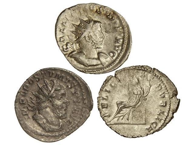 Lote 3 Antoninianos. GALIENO, SALONINA y PÓSTUMO. AR. A EXAMINAR. MBC- a MBC+.