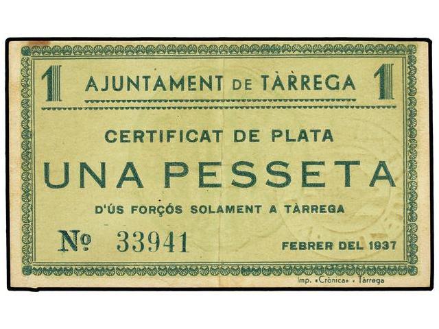 Lote 3 billetes 25, 50 Cèntims y 1 Pesseta. Febrer y Juny 1937. Aj. de TÀRREGA. AT-2441, 2442a, 2443; T-2832, 2833a, 2834. MBC y MBC+.
