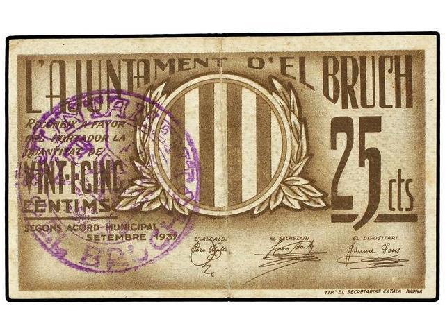 Lote 3 billetes 25, 50 Cèntims y 1 Pesseta. - Setembre 1937. - Aj. d´EL BRUCH. - AT-540/542; T-631/33. MBC a EBC. - -
