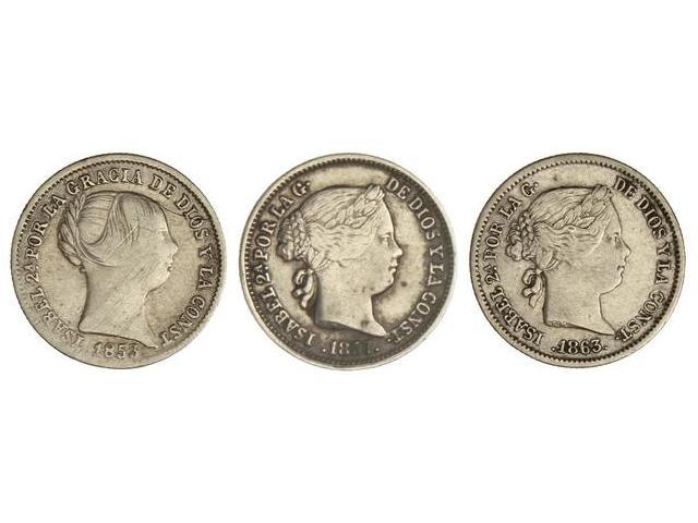 Lote 3 monedas 1 Real. 1853, 1857 y 1863. SEVILLA. La de 1857 ESCASA. A EXAMINAR. Cal-435, 438, 443. BC+ a MBC.