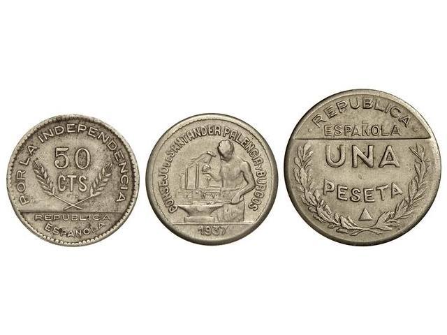 Lote 3 monedas 50 Céntimos (2) y 1 Peseta. 1937. CONSEJO DE SANTANDER PALENCIA y BURGOS. CuNi. Las de 50 Céntimos con y sin P.R. MBC a MBC+.