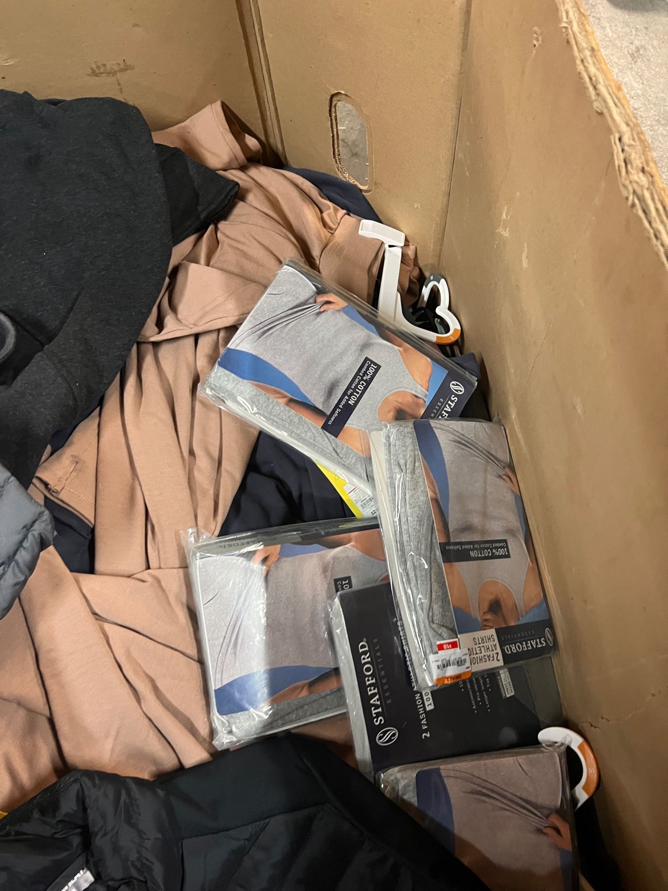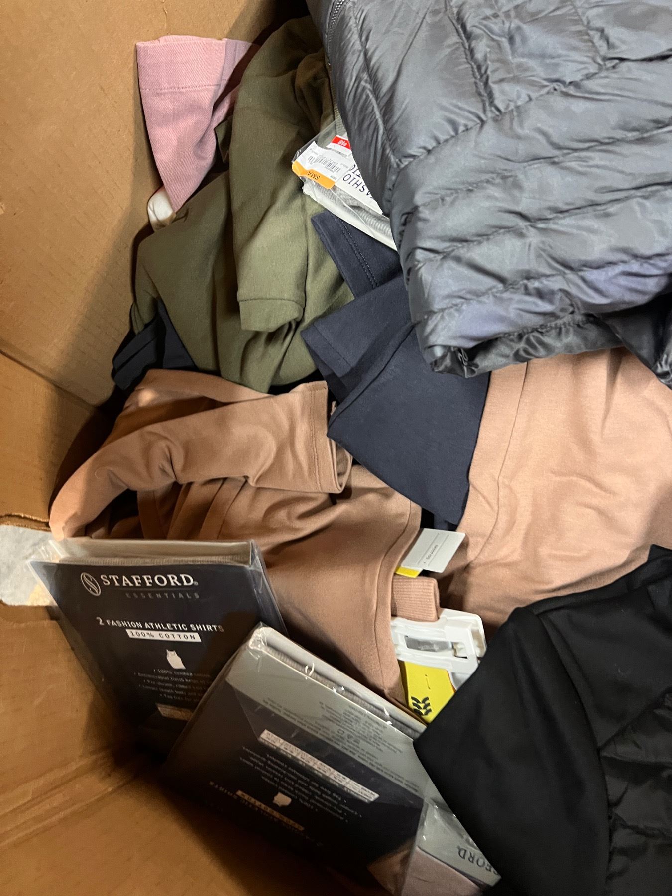 Lote de Ropa Mixta de las tiendas Home Depot y Target clasificada como liquidaciones y sobrecargos, todas las prendas son nuevas y con etiqueta. Las prendas puede que vengan repetidas y de sizes muy pequeños o muy grandes.
