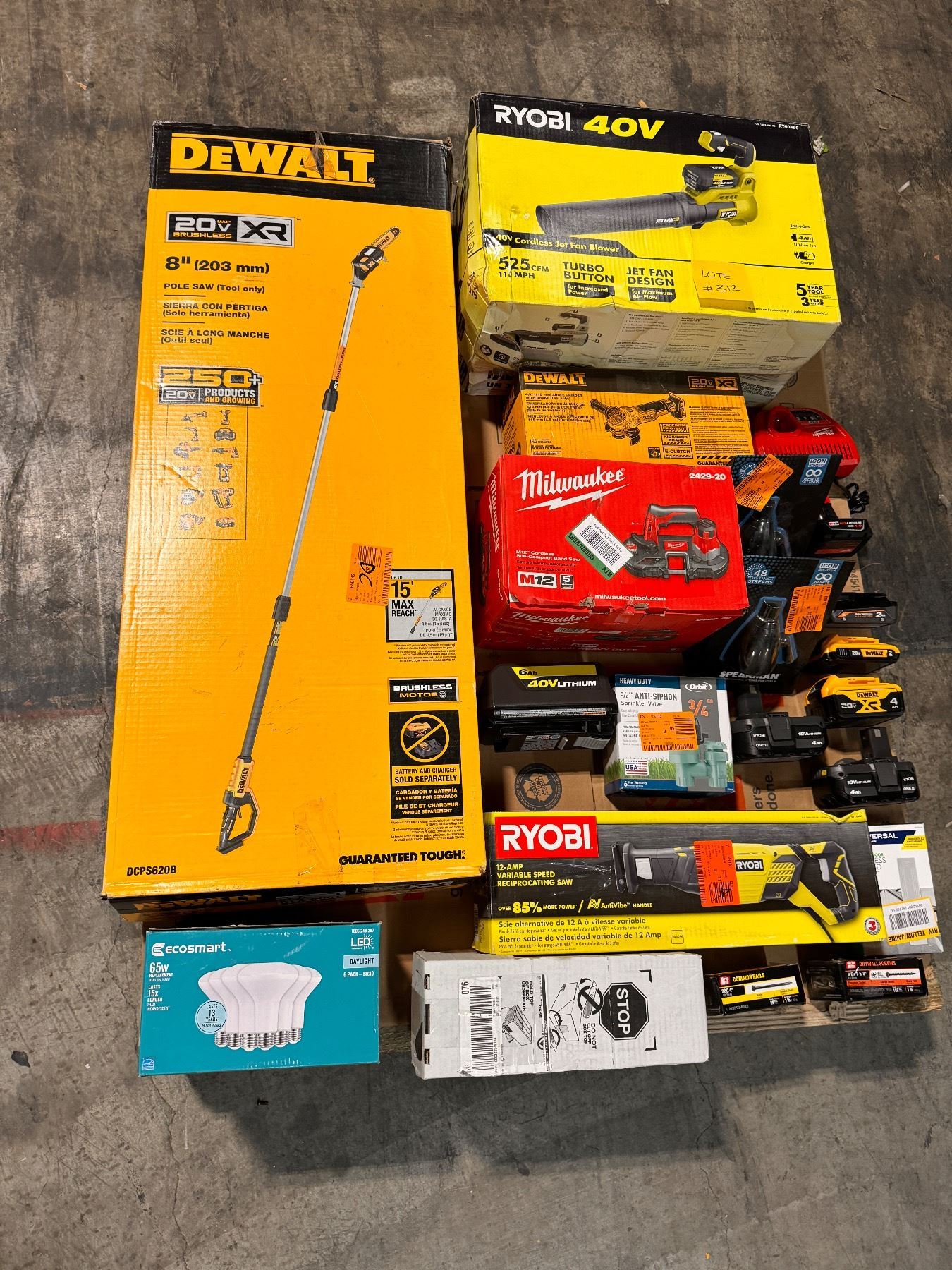Pallet de Herramienta Home Depot, cada uno de los productos están clasificados como retornos y liquidaciones los cuales pueden venir usados, rotos y incluso completamente nuevos, apueste con responsabilidad y a lo que usted mire.