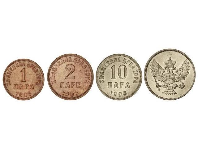 Lote 4 monedas 1, 2, 10 y 20 Para. 1906. Br. y Ni. KM-1/4. SC.