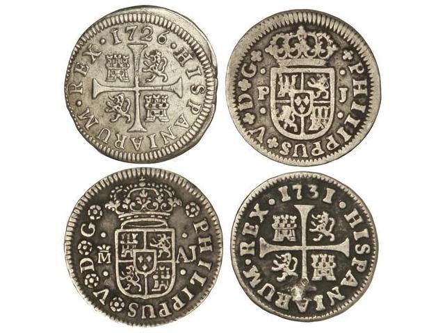 Lote 4 monedas 1/2 Real. 1731, 1746, 1726 y 1738. MADRID; MADRID; SEGOVIA Y SEVILLA. J.F.; A.J.; F. y P.J. (La de MADRID- J.F., intento de perforación). Cal-1797, 1803, 1921 y 1936. MBC- a EBC.