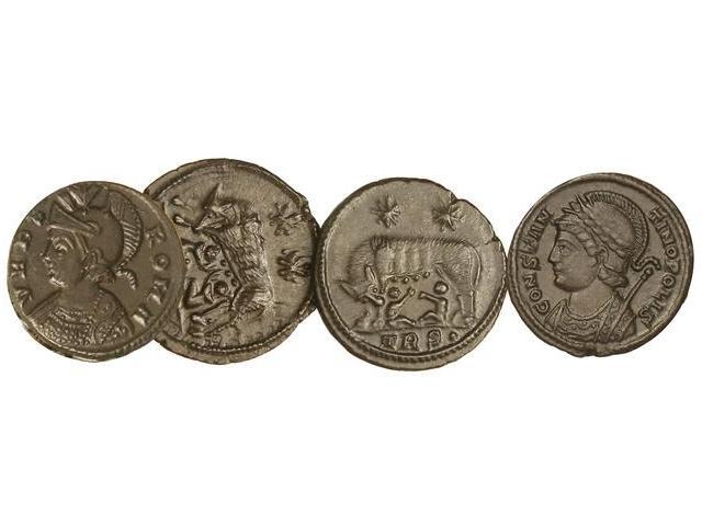 Lote 4 monedas de medio Centenional. CONSTANTINOPOLIS 330--335 d.C. y URBS ROMA 330-348 d.C. (3). AE. Pátina marrón. Todas diferentes. A EXAMINAR. C-21 var./C-17 var. EBC a EBC+.