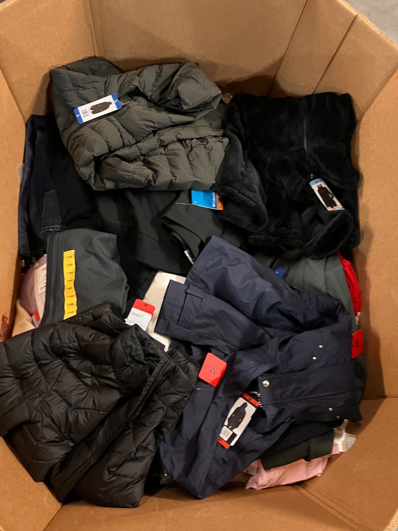 Aproximadamente 140-150 piezas. Lote con Ropa de Costco y Target, todas las prendas están nuevas con etiqueta. Mercancia clasificada como devoluciones y sobrecargos. Es posible que la ropa venga repetida y mismos/diferentes sizes.
