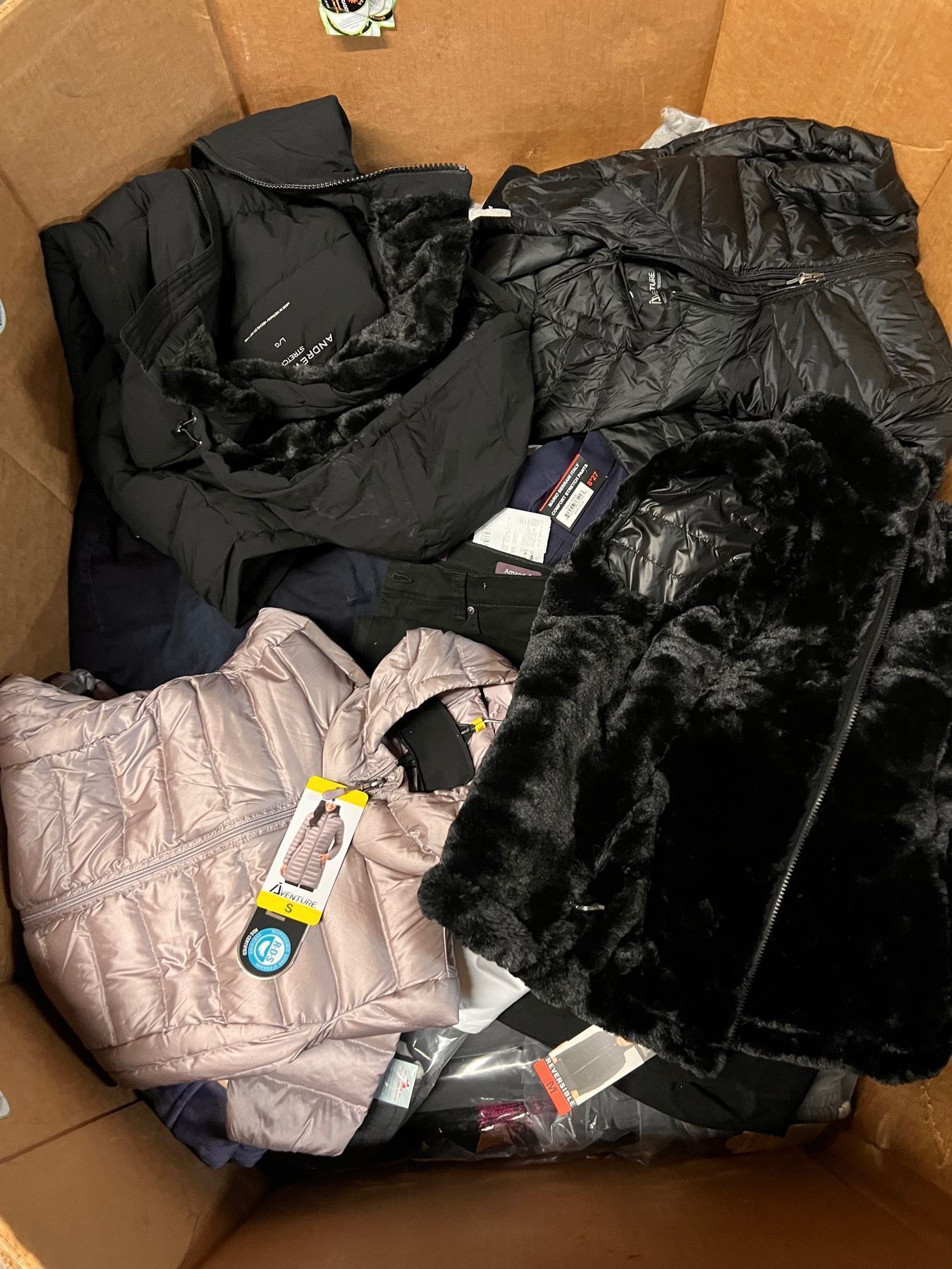 Aproximadamente 140-150 piezas. Lote con Ropa de Costco y Target, todas las prendas están nuevas con etiqueta. Mercancia clasificada como devoluciones y sobrecargos. Es posible que la ropa venga repetida y mismos/diferentes sizes.