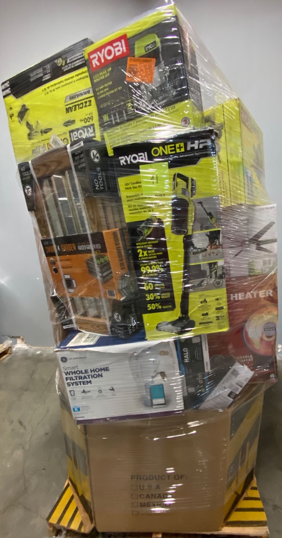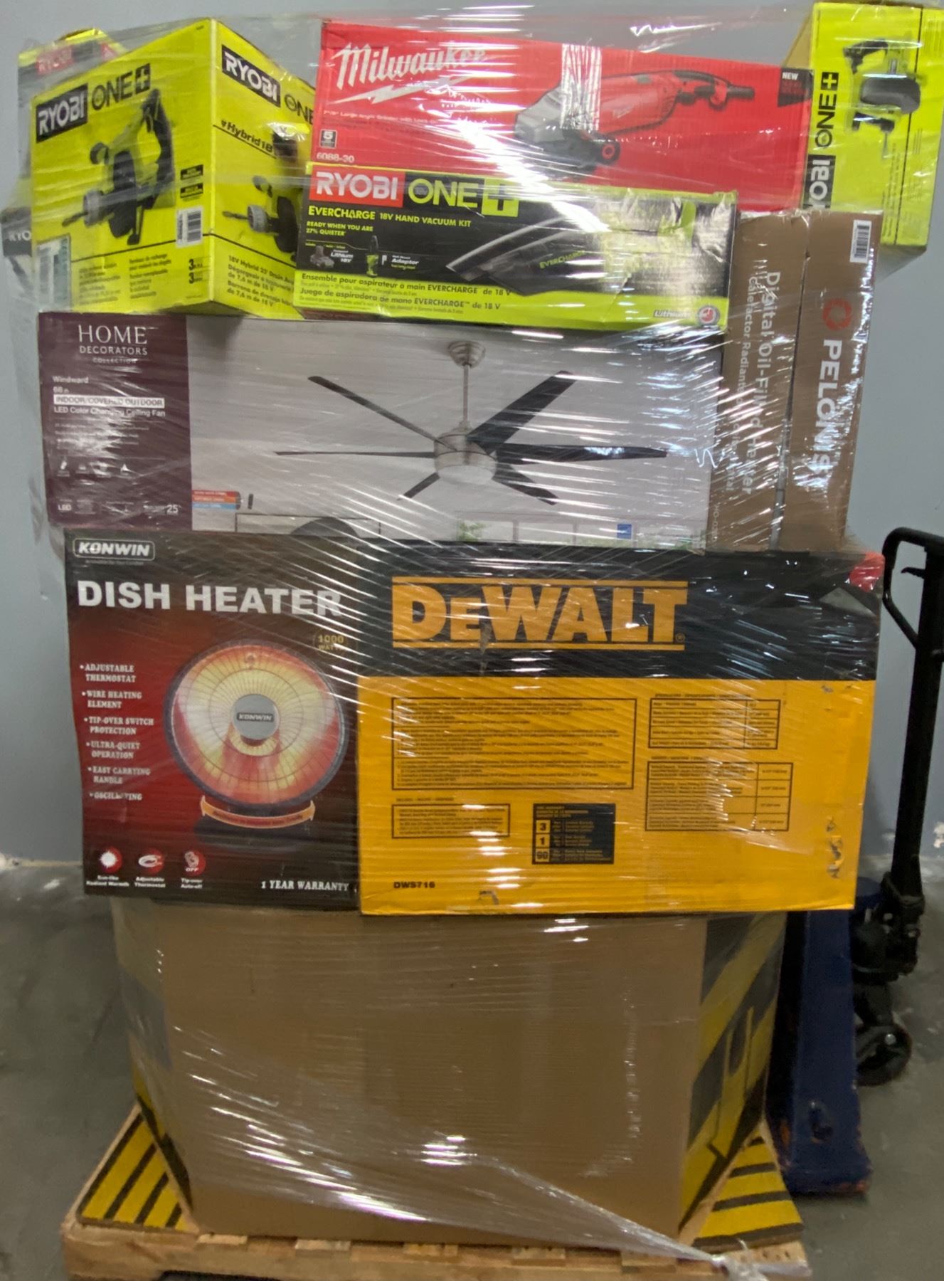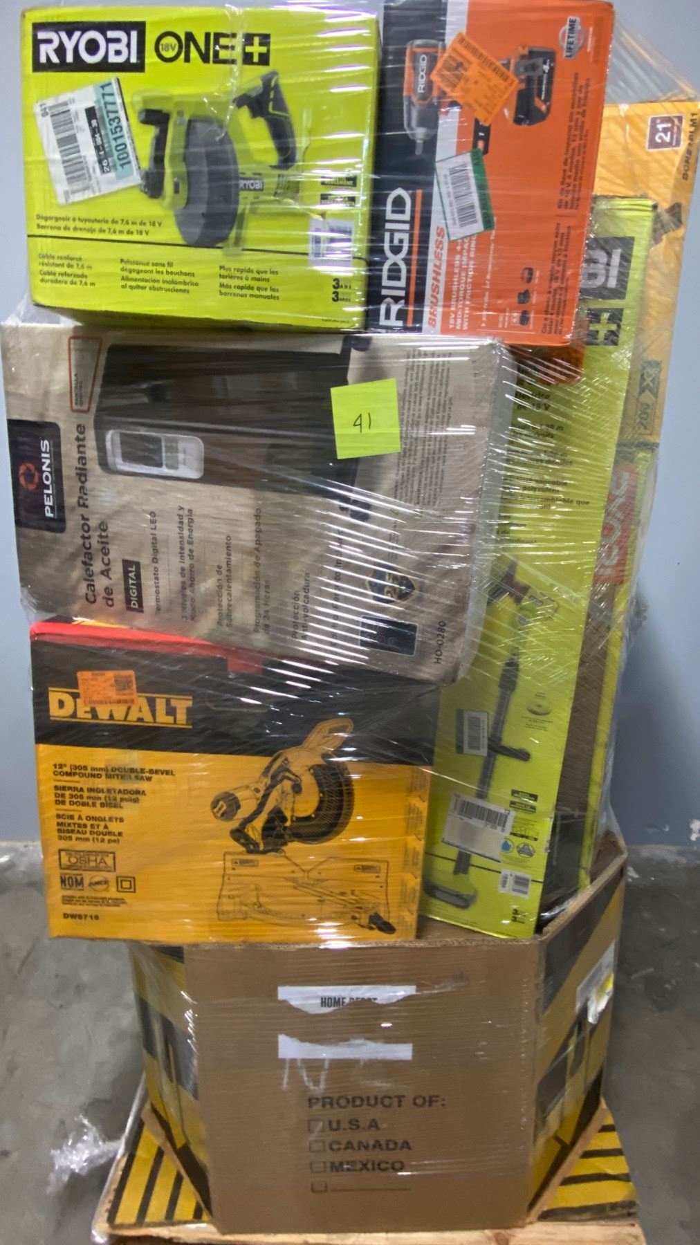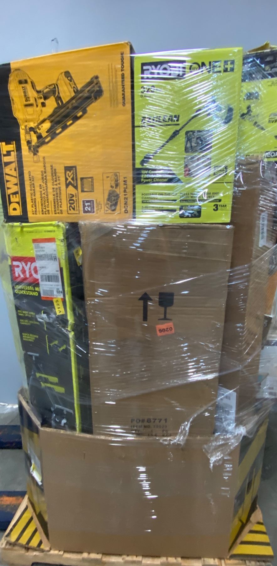 Lote de Herramienta y Home Improvements de la tienda Home Depot. Lote te incluye pistola de clavos Dewalt, pistola de presión Ryobi, grinder Milwuakee, aspiradora de mano Ryobi, barrendero de drenajes Ryobi, sierra ingletadora Dewalt, y mucho mas.