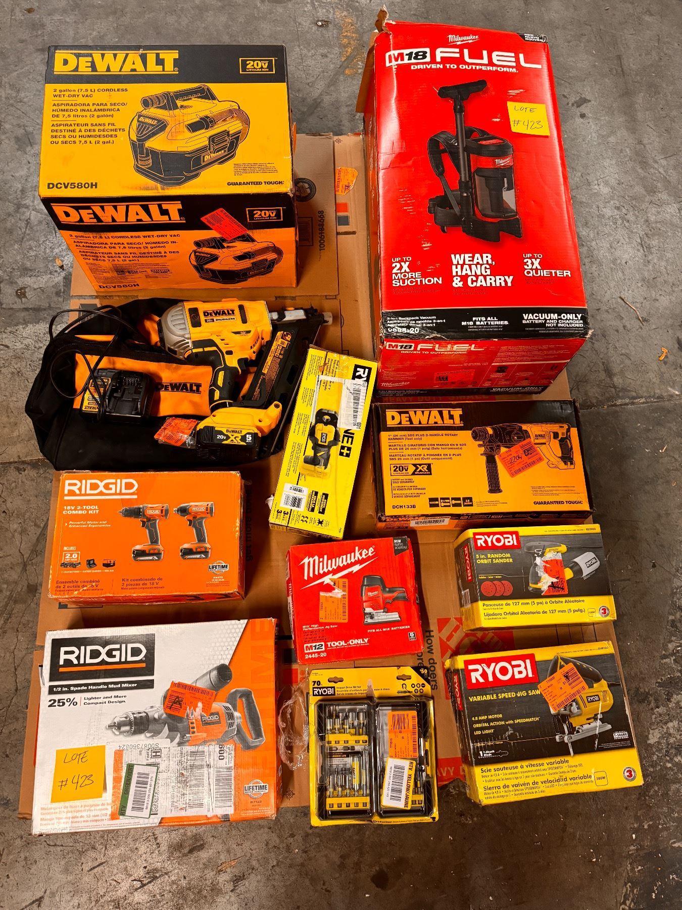 Lote de Herramienta Home Depot, cada uno de los productos están clasificados como retornos y liquidaciones los cuales pueden venir usados, rotos y incluso completamente nuevos, apueste con responsabilidad y a lo que usted mire.