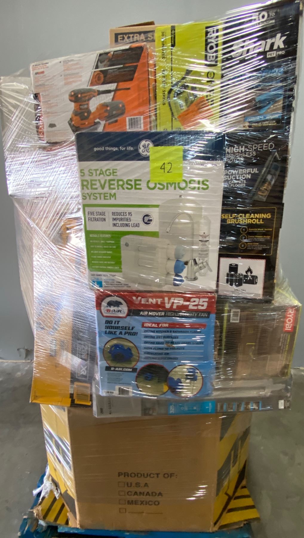 Lote de Herramienta y Home Improvements de la tienda Home Depot. Lote te incluye un sistema de filtración de agua, lijadora marca Ridgid, abanico de cielo, calentones, plateros, sopladora Ryobi, sopladora Toro, sierra tronadora Dewalt, sierra compuesta Ryobi, motocierra Dewalt, y mucho mas.
