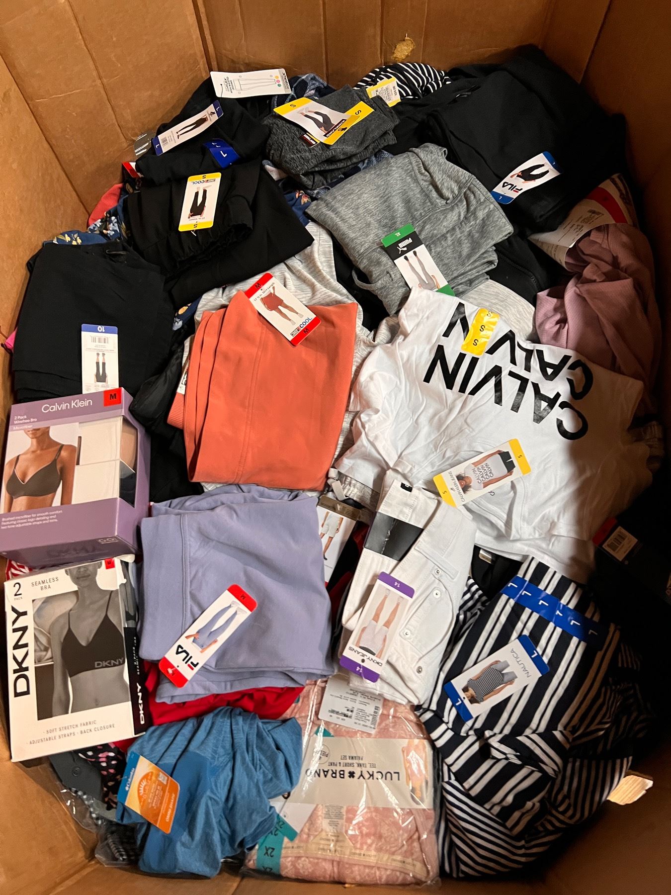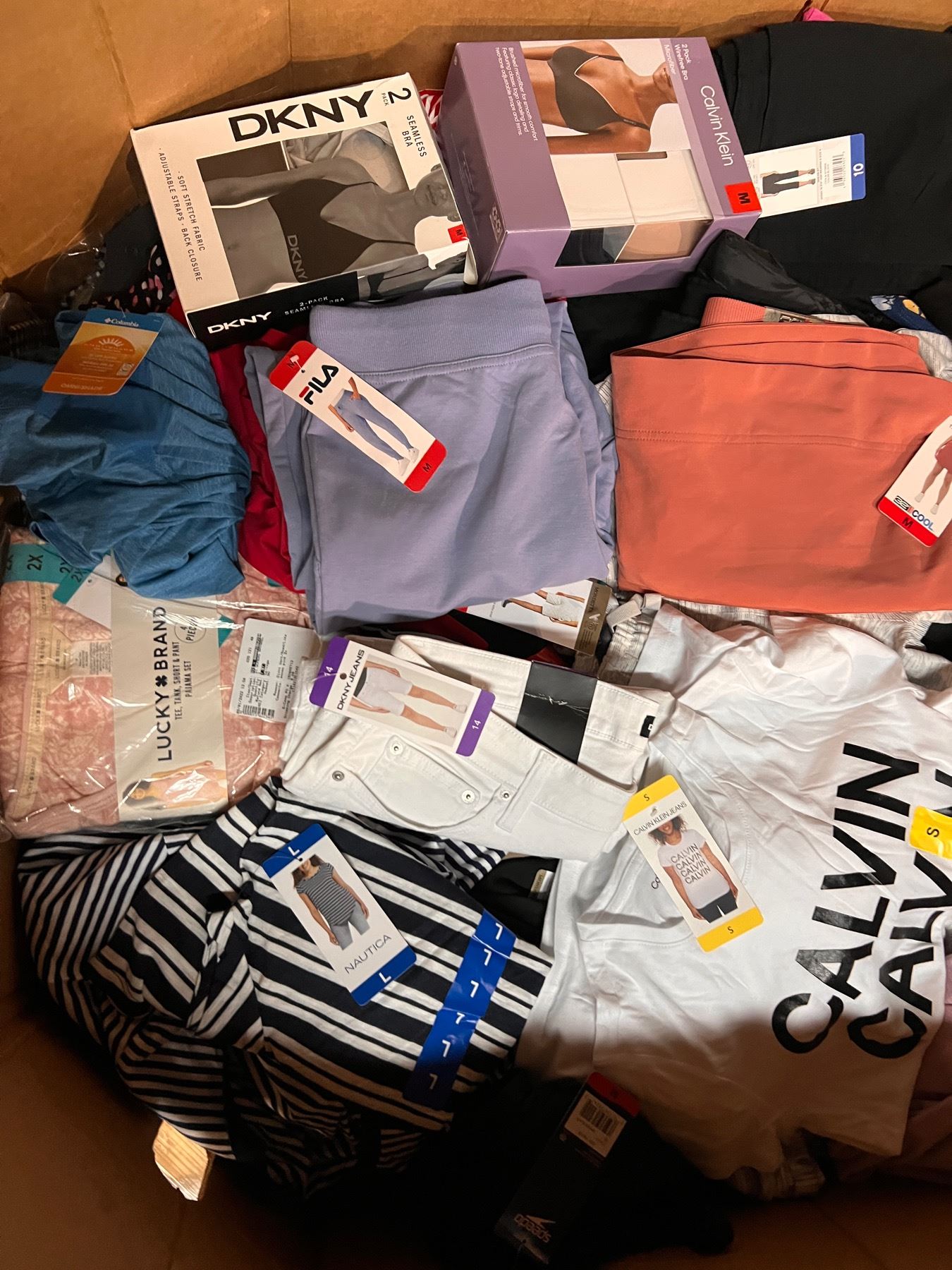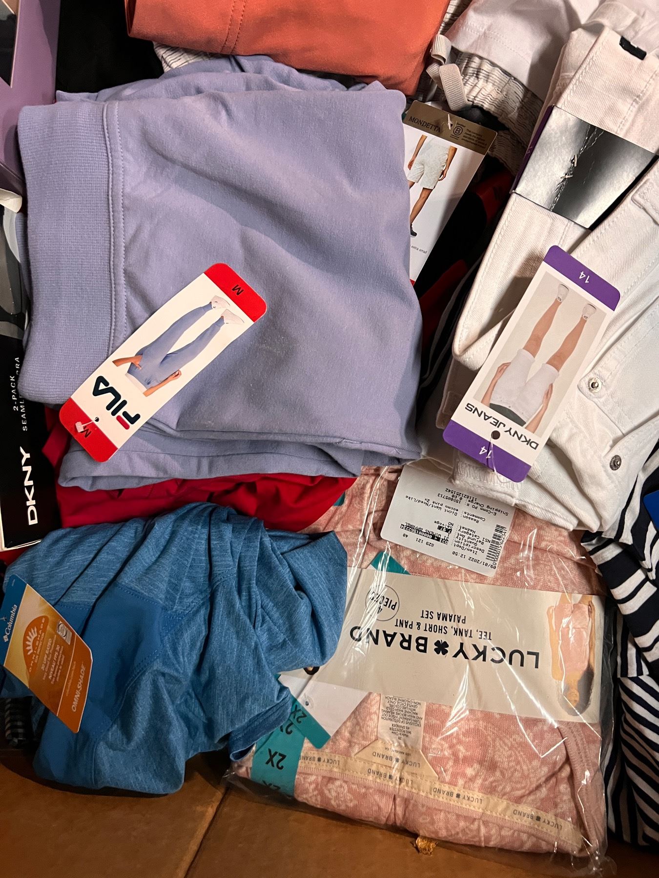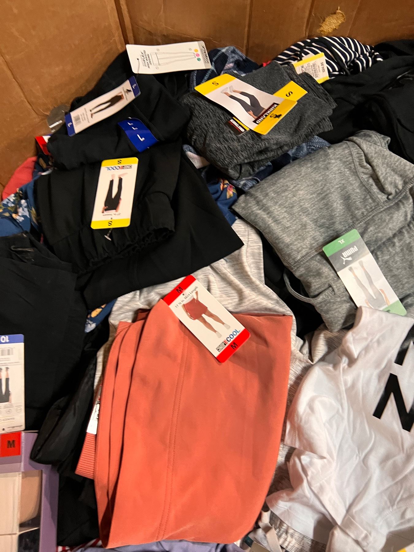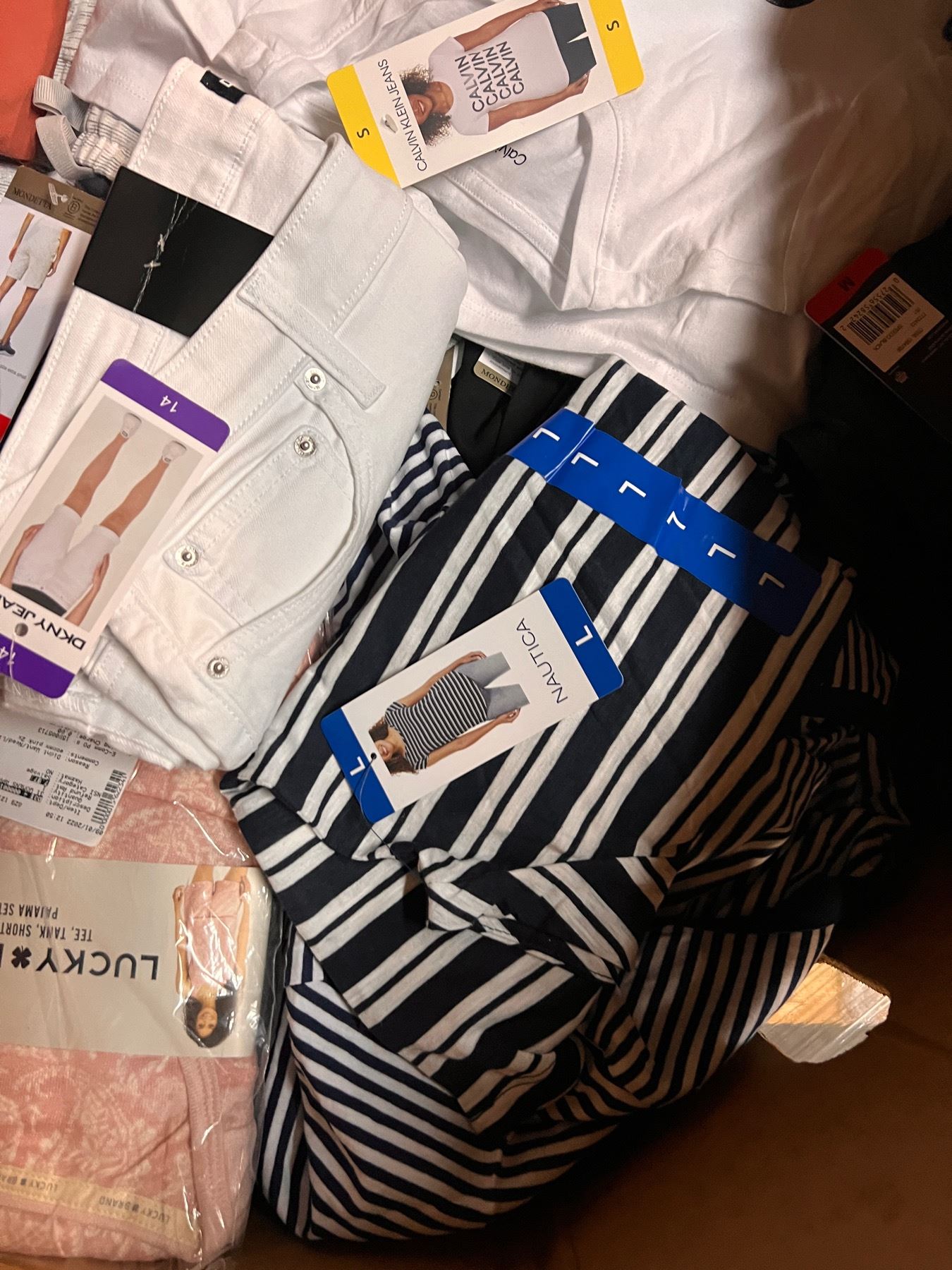 Lote de Ropa mixta de la tienda Costco. Toda la ropa presente esta totalmente nueva y con etiquetas. Ropa mixta de diferentes colores, estilos y tamaños