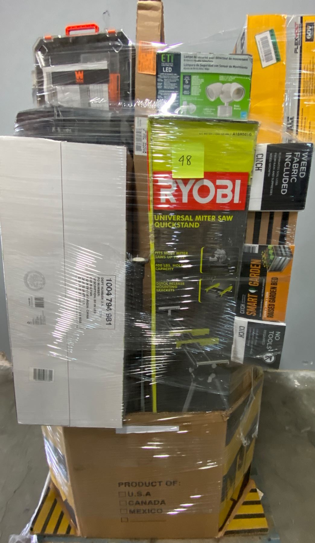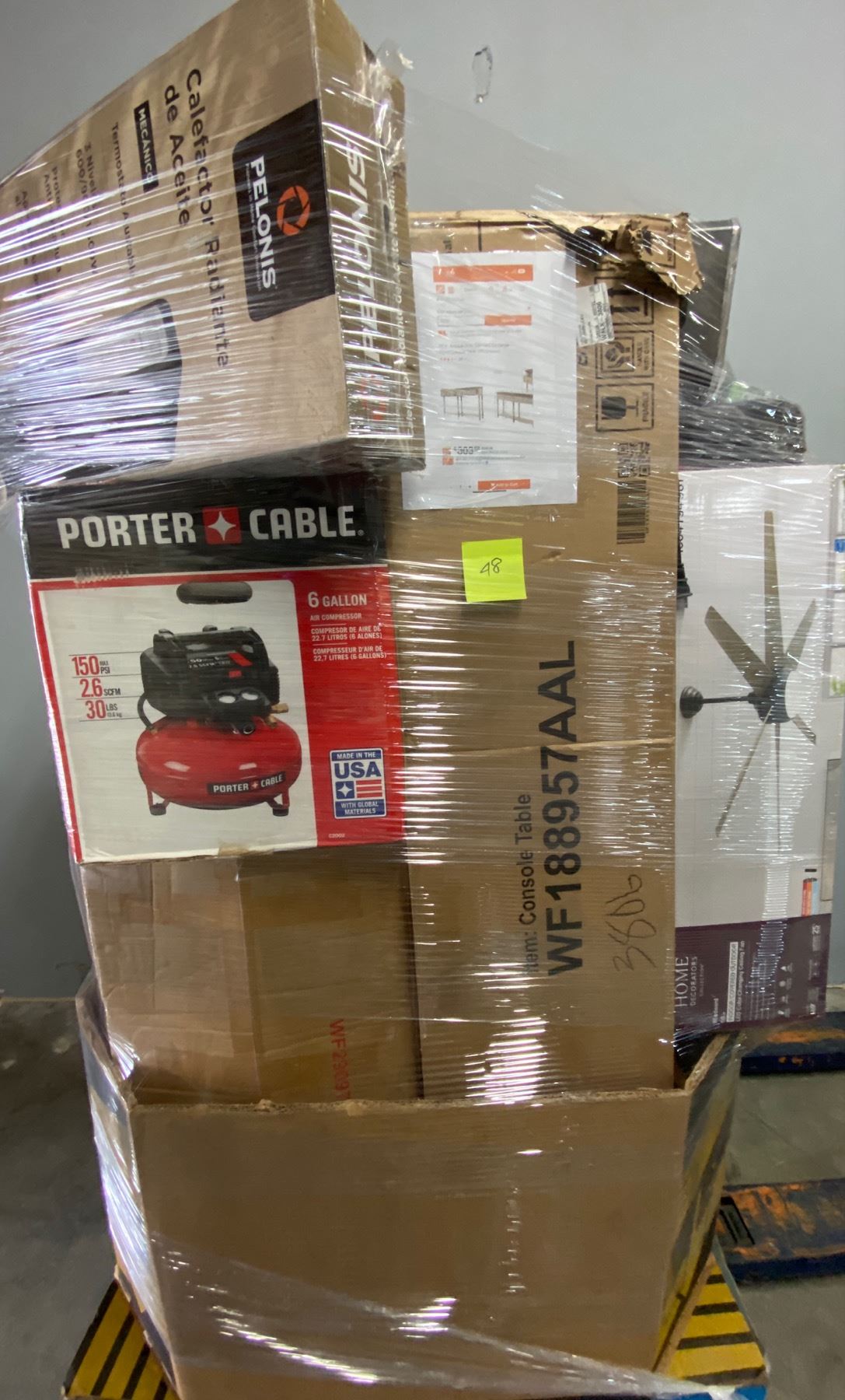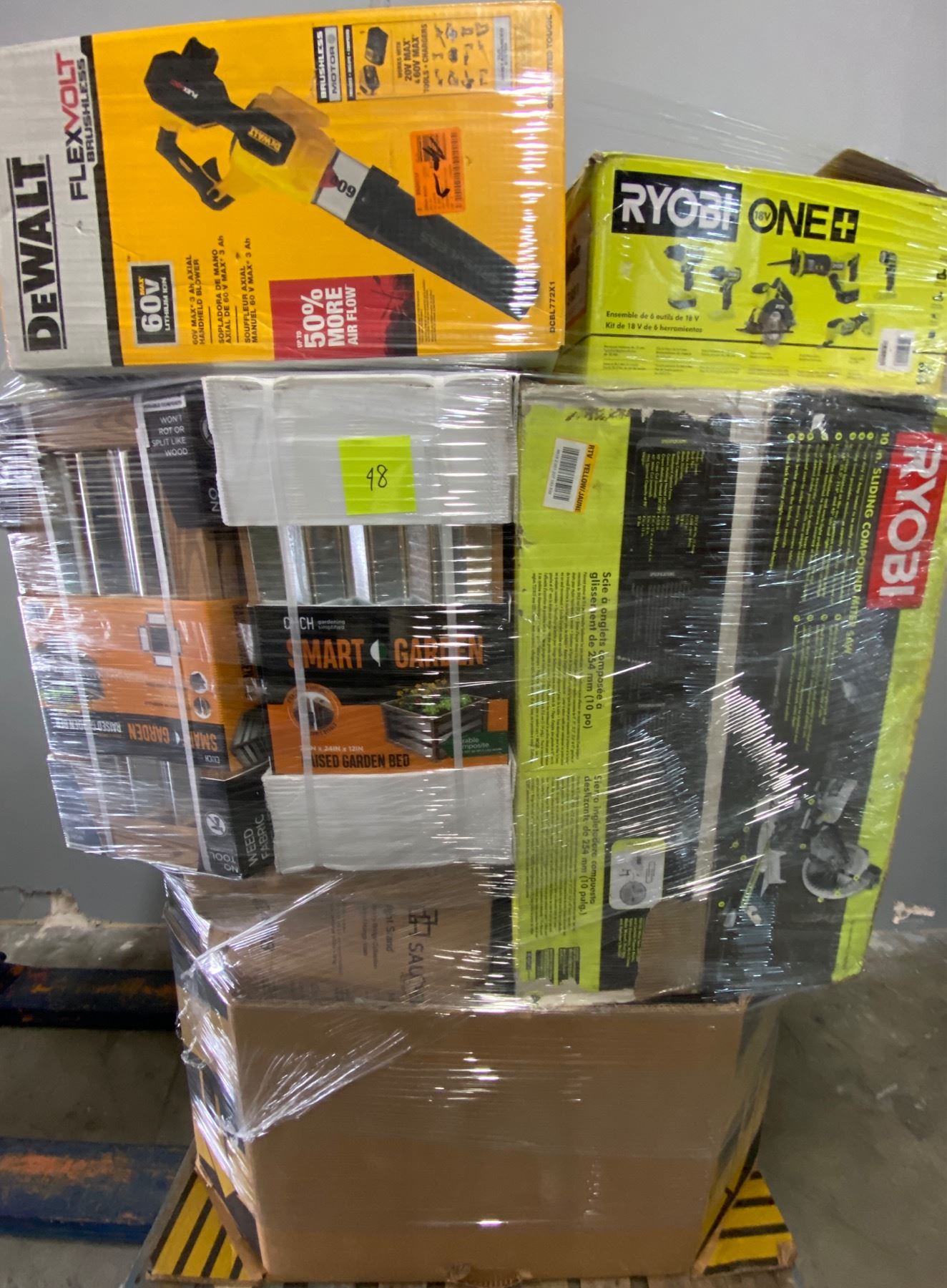 Lote de Herramienta y Home Improvements de la tienda Home Depot. Lote te incluye set de herramienta Ryobi 6 piezas, sierra compuesta marca Ryobi, calentones, compresor Porter, mesa, abanicos de cielo, planteros, sopladora Dewalt, y mucho mas.