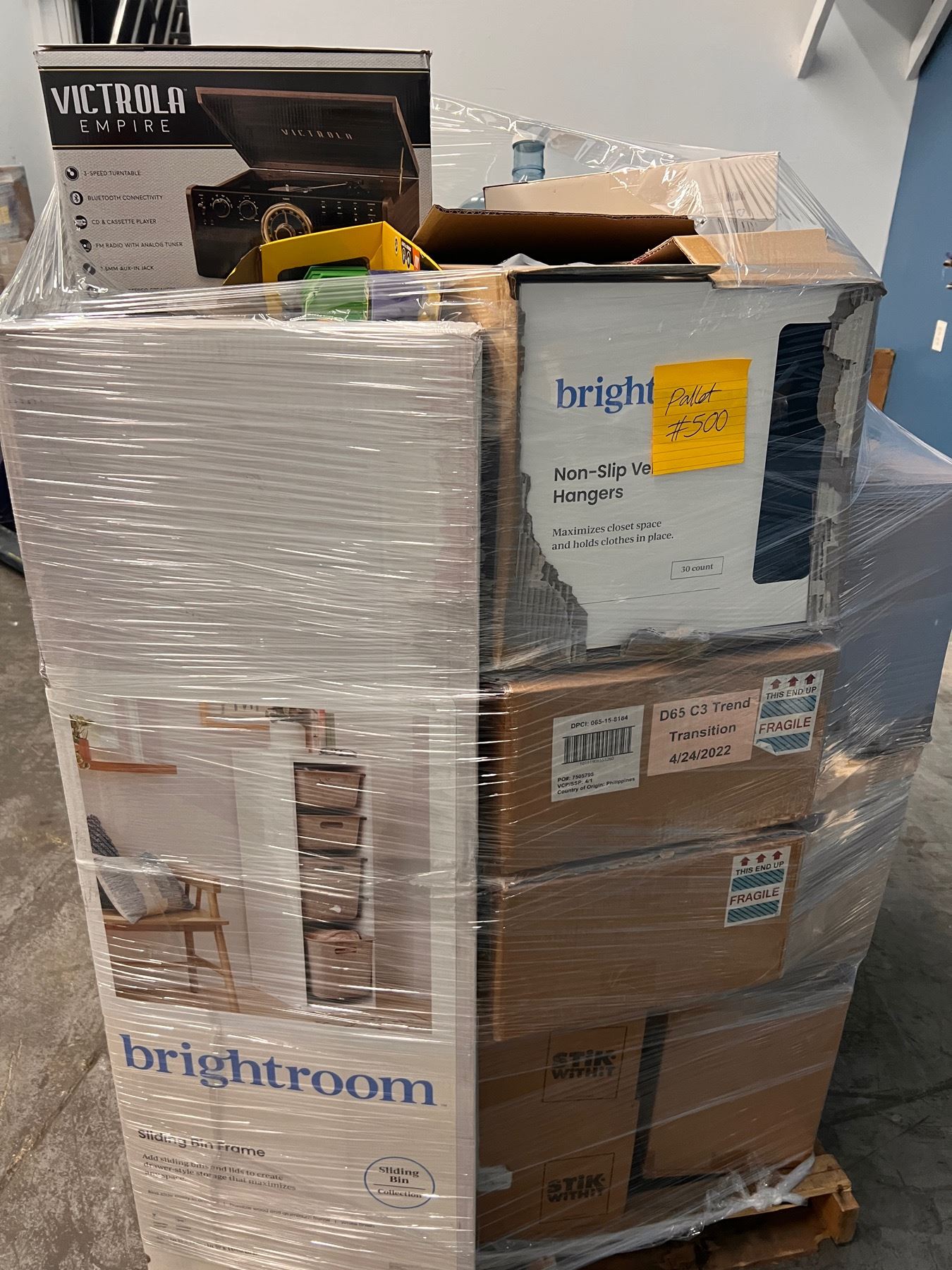 Lote con mercancia de Target y Amazon. Toda la mercancia en este pallets esta clasificada como retornos, sobrecargos y liquidaciones. Los productos puede que vengan usados, rotos o nuevos. Apostar con responsabilidad.
