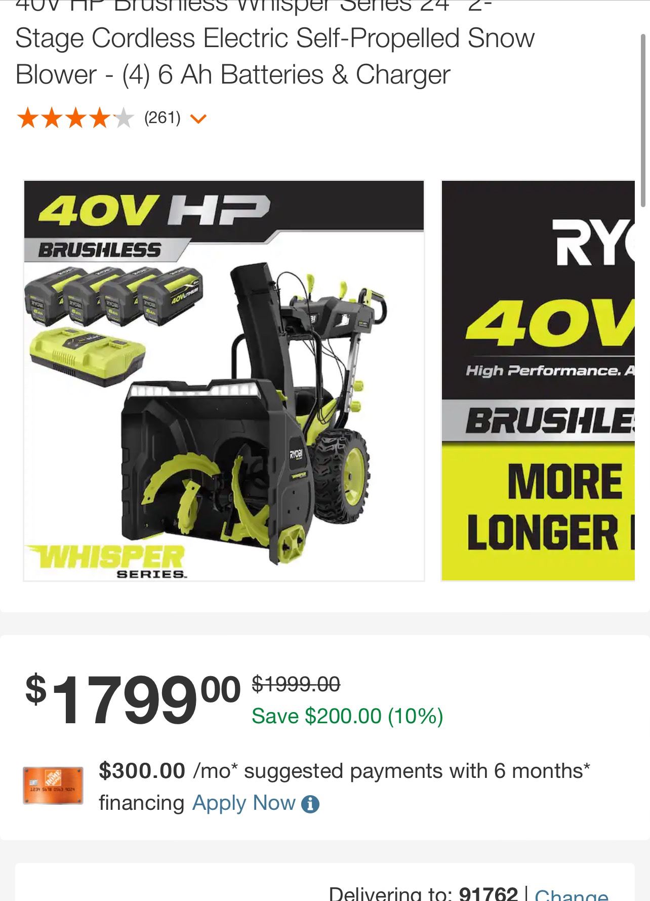 Lote Ryobi con Maquinas para remover nieve, cada una de las maquinas están valoradas con precio estimado de $1799