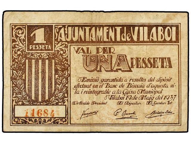 Lote 6 billetes 25(3), 50 Cèntims y 1(2) Pesseta. - 19 Maig 1937. - Aj. de VILABOI. - Diversas variantes. AT-2760b, 2760e, 2761 2762, 2762a y 2762b; T-3193b, 3193e, 3194, 3195, 3195a y 3195b. MBC/EBC. - -