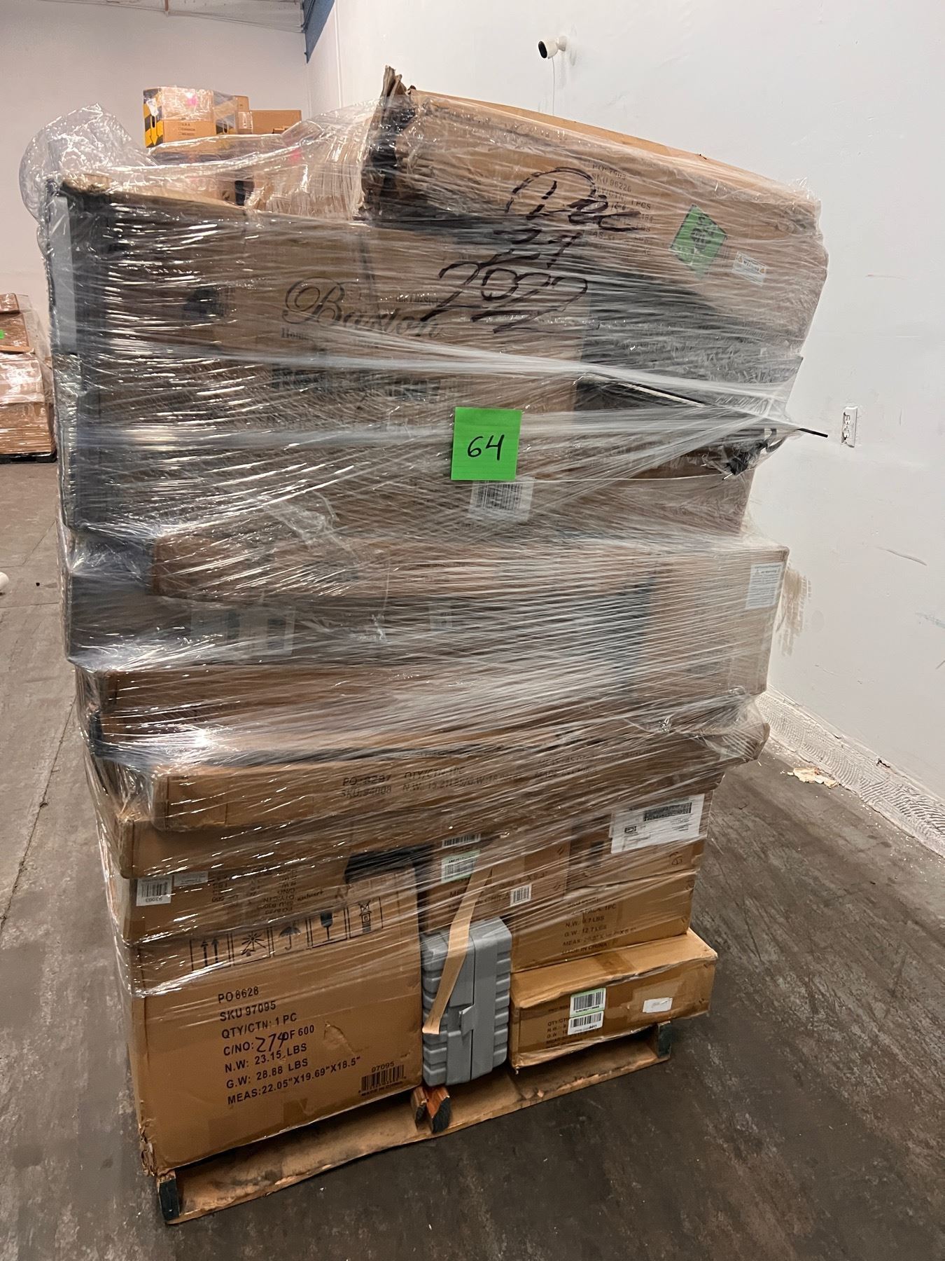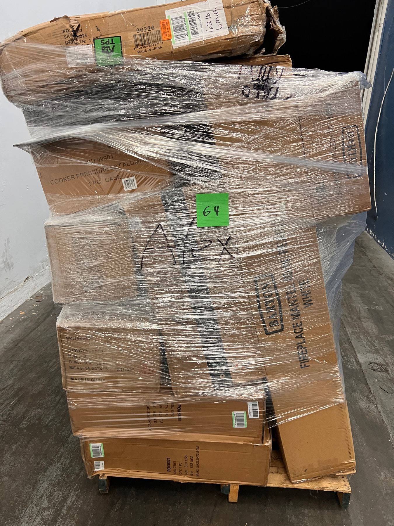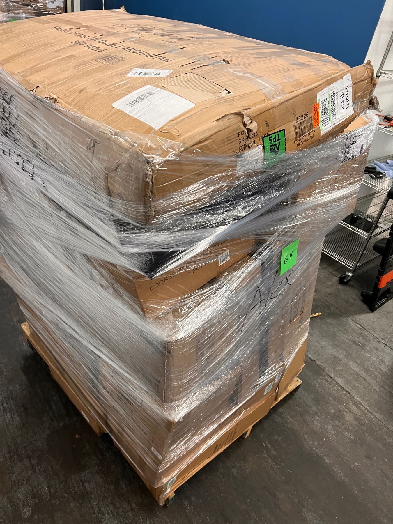 Pallet con Mercancia de Home Depot mixta, Cajas misteriosas con productos clasificados como retornos y liquidaciones. Es probable que la mercancia venga nueva, usada o sin función.