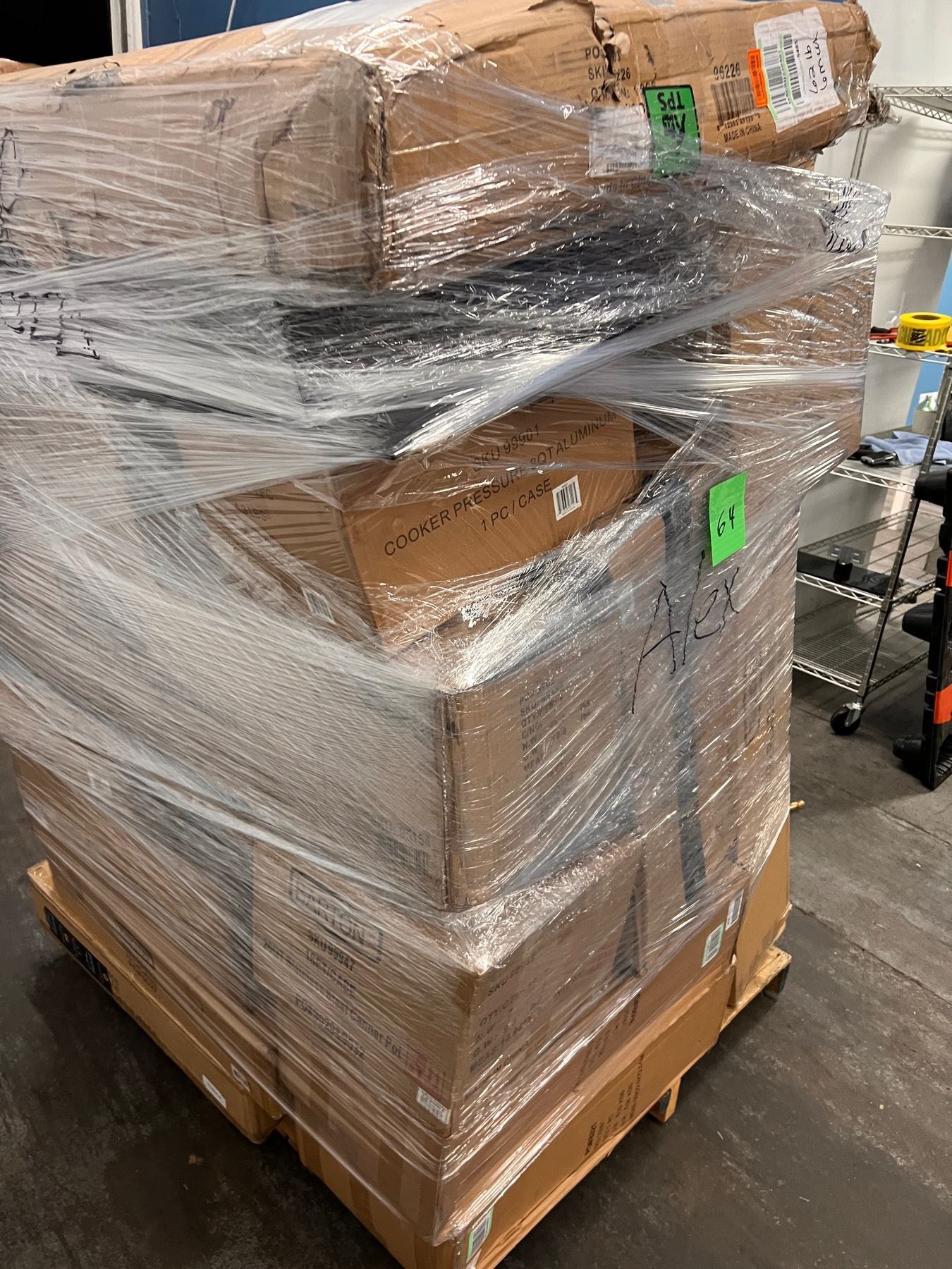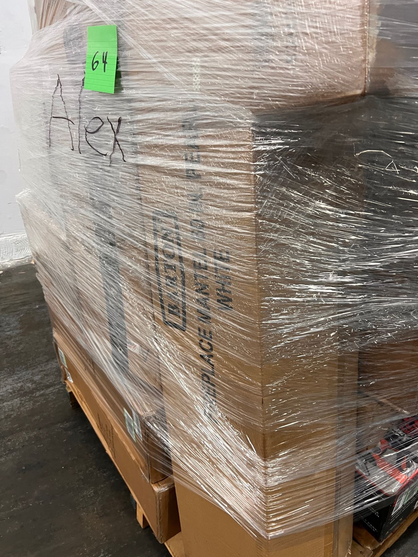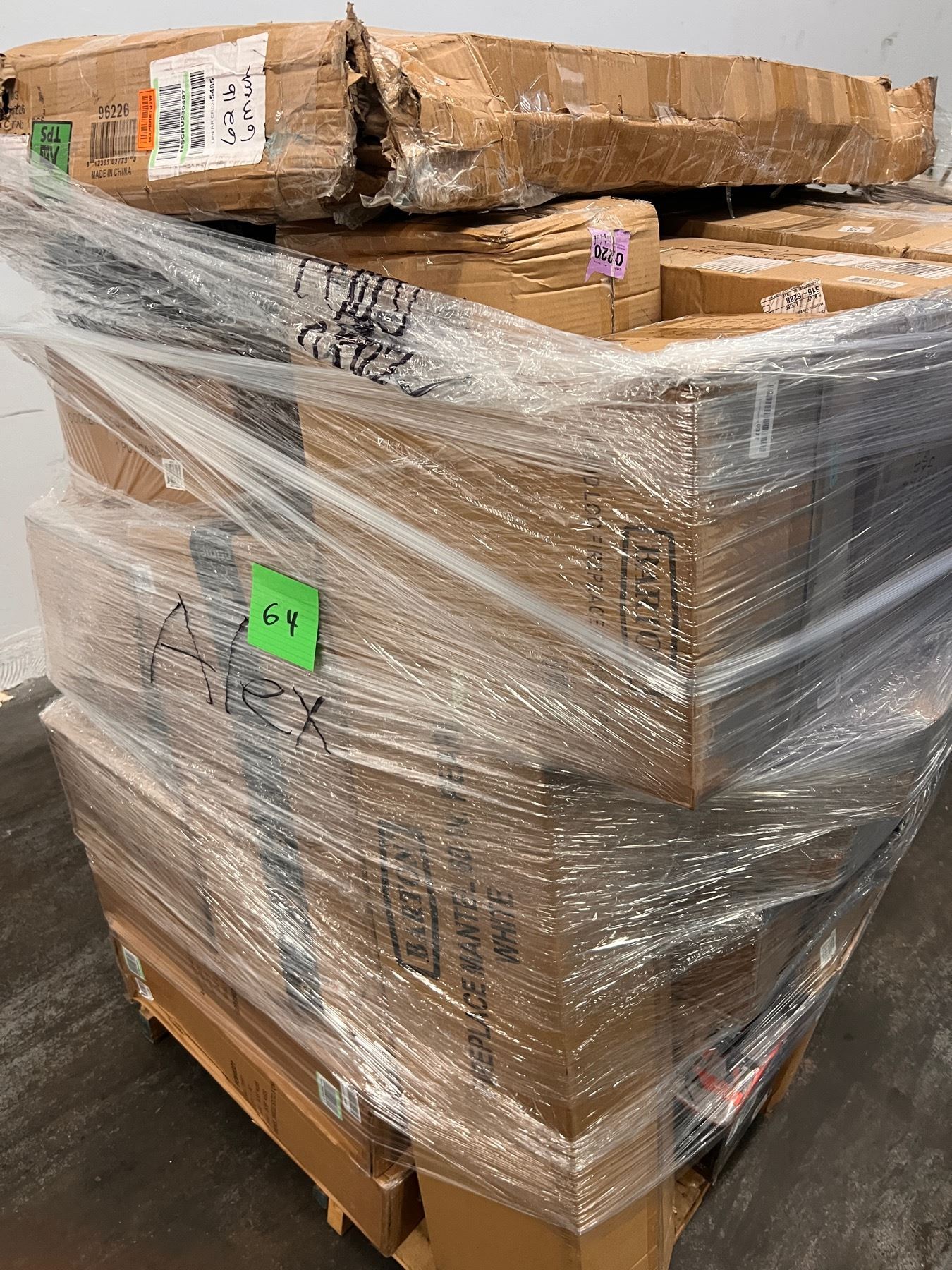 Pallet con Mercancia de Home Depot mixta, Cajas misteriosas con productos clasificados como retornos y liquidaciones. Es probable que la mercancia venga nueva, usada o sin función.