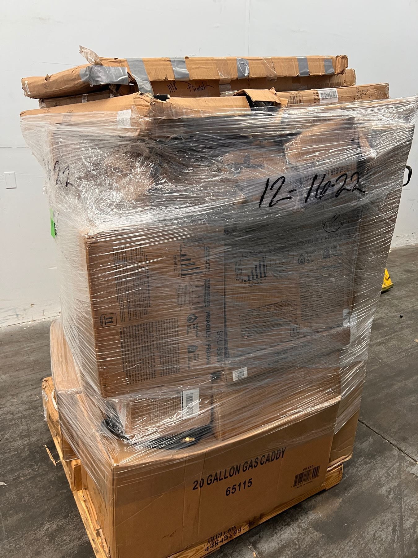 Pallet con Mercancia de Home Depot mixta, Cajas misteriosas con productos clasificados como retornos y liquidaciones. Es probable que la mercancia venga nueva, usada o sin función.