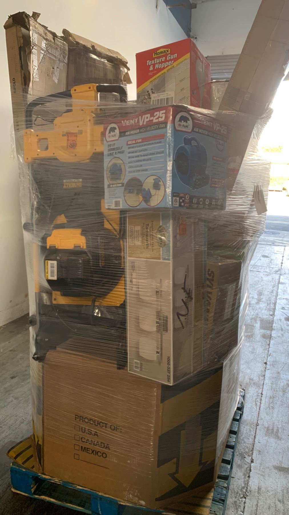 Pallet con herramienta y home improvements. toda la mercancia esta clasificada como retornos, liquidaciones y sobrecargos.