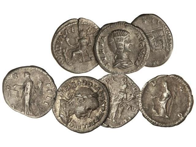 Lote 7 Denarios. ADRIANO (2), ANTONINO PÍO, GORDIANO III, IULIA DOMNA (3). AR. A EXAMINAR. BC+ a MBC+.