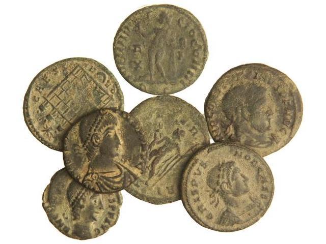 Lote 7 pequeños bronces AE 3 y AE 4. LICINIO, CRISPO y CONSTANTINO. AE. Pátina verde. A EXAMINAR. MBC- a MBC+.