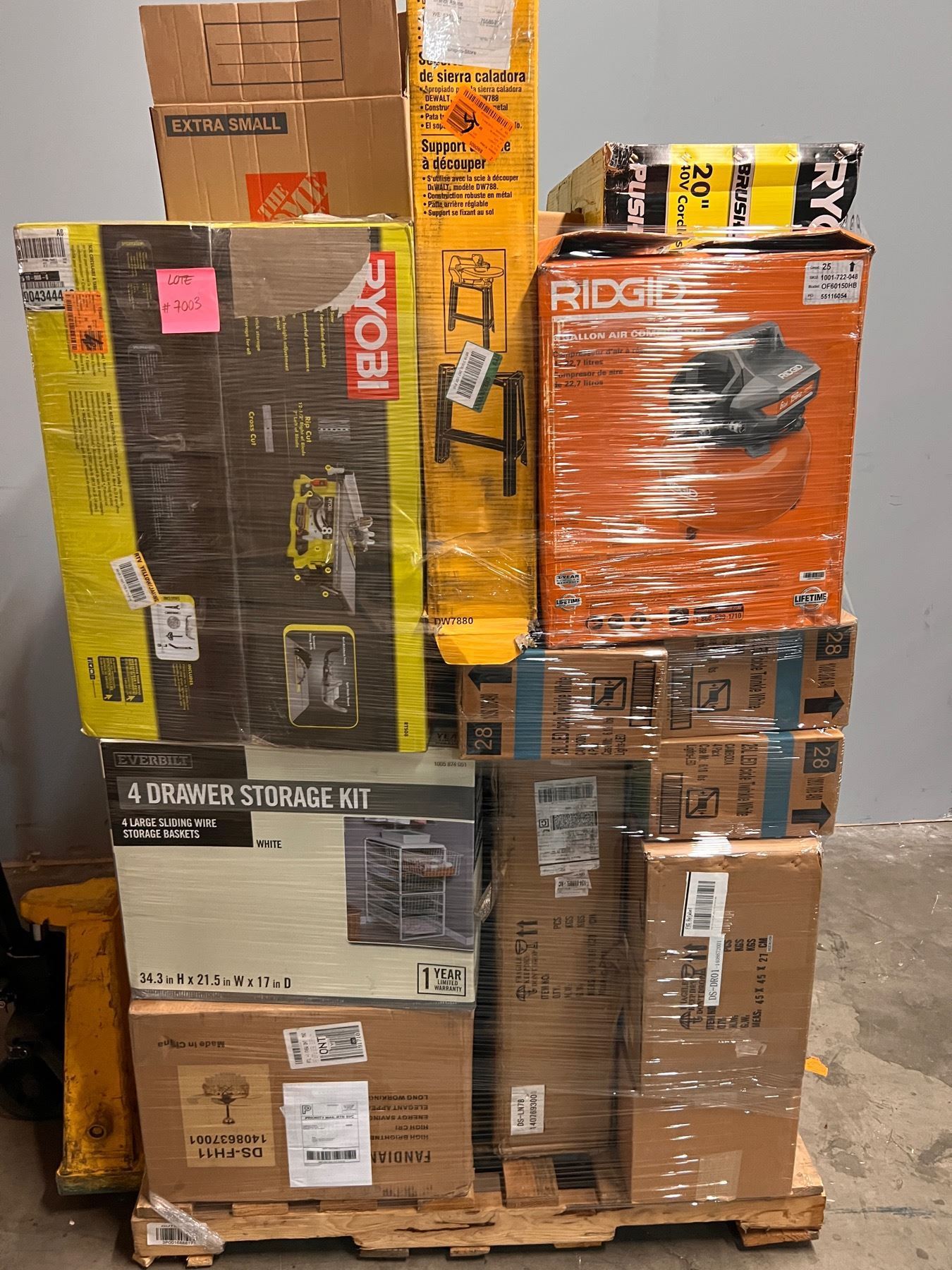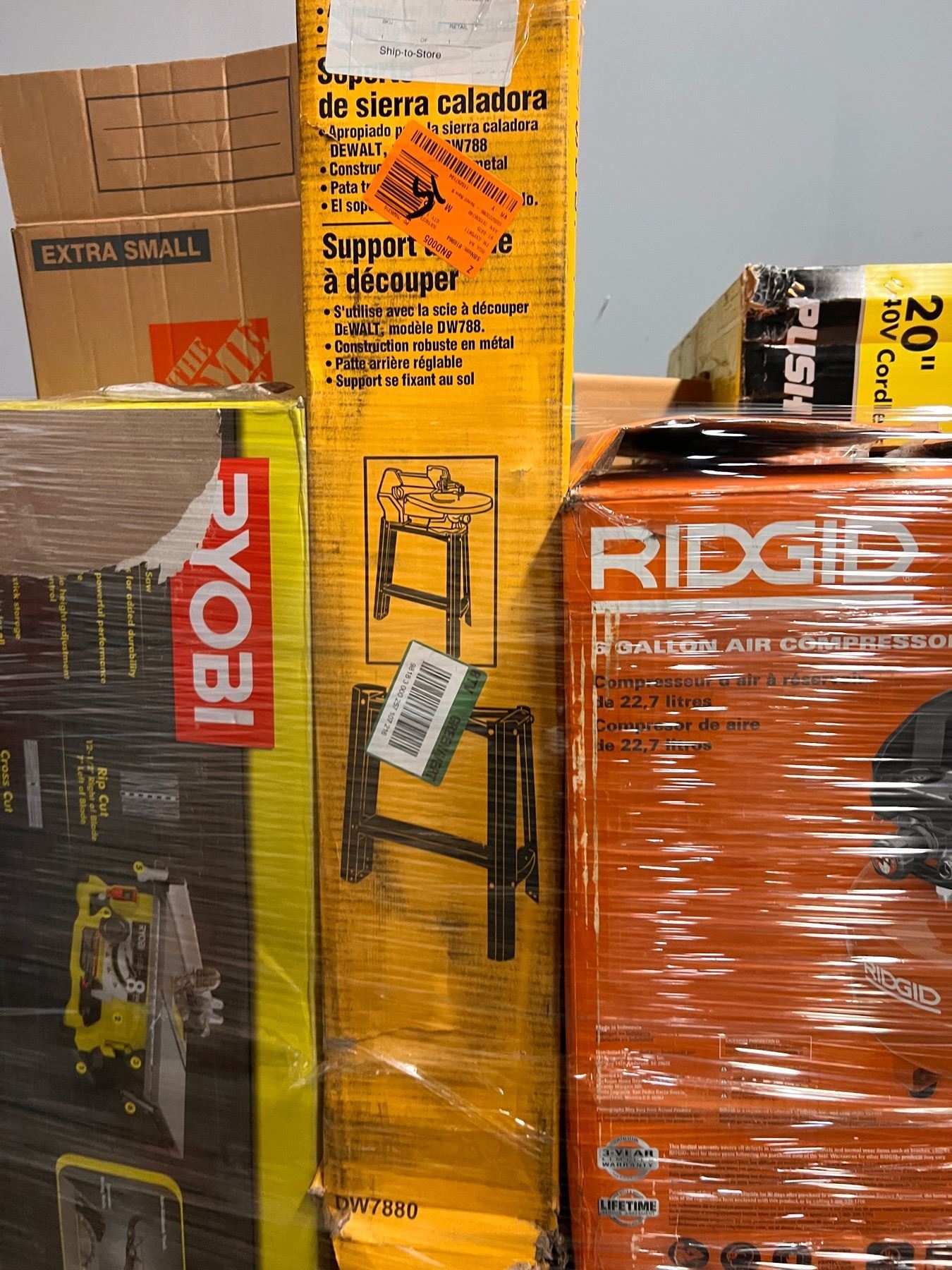 Lote de Mercancia Home Depot. Herramienta y Home Improvements. todo lo que se muestra/encuentra en el pallet presente es clasificado como sobrecargo y retornos. Algunos productos sob usados, con piezas restantes e incluso nuevos.