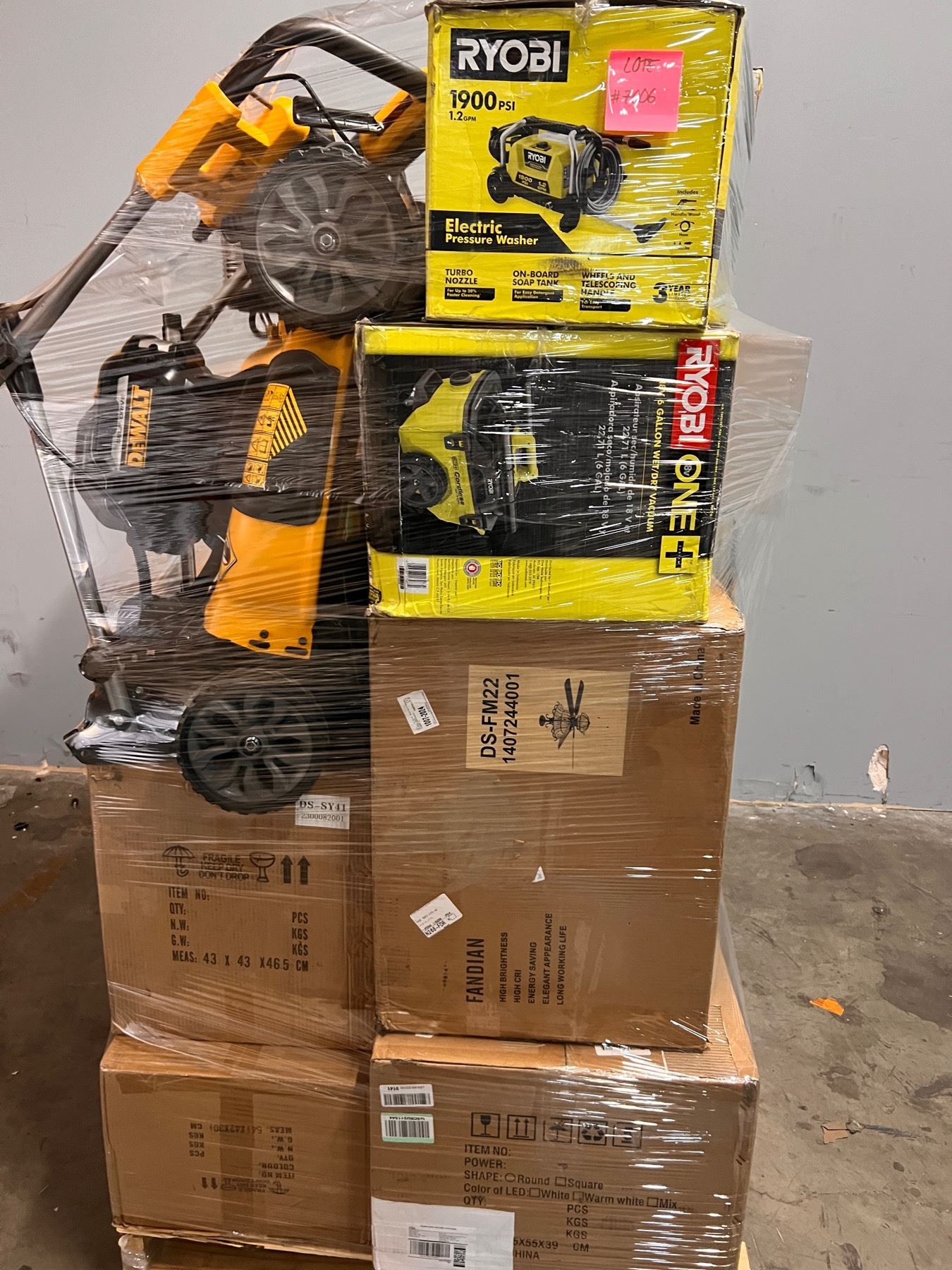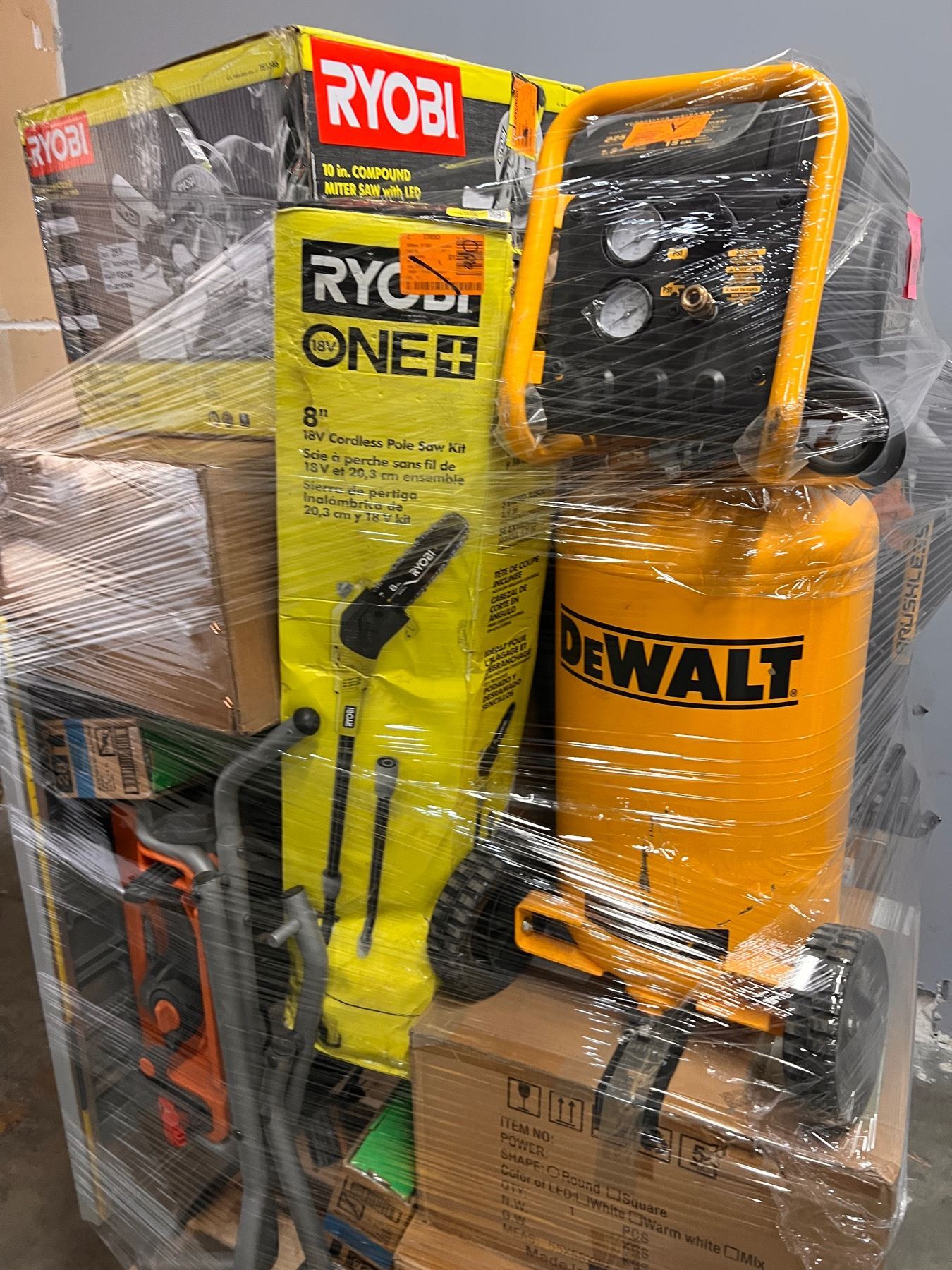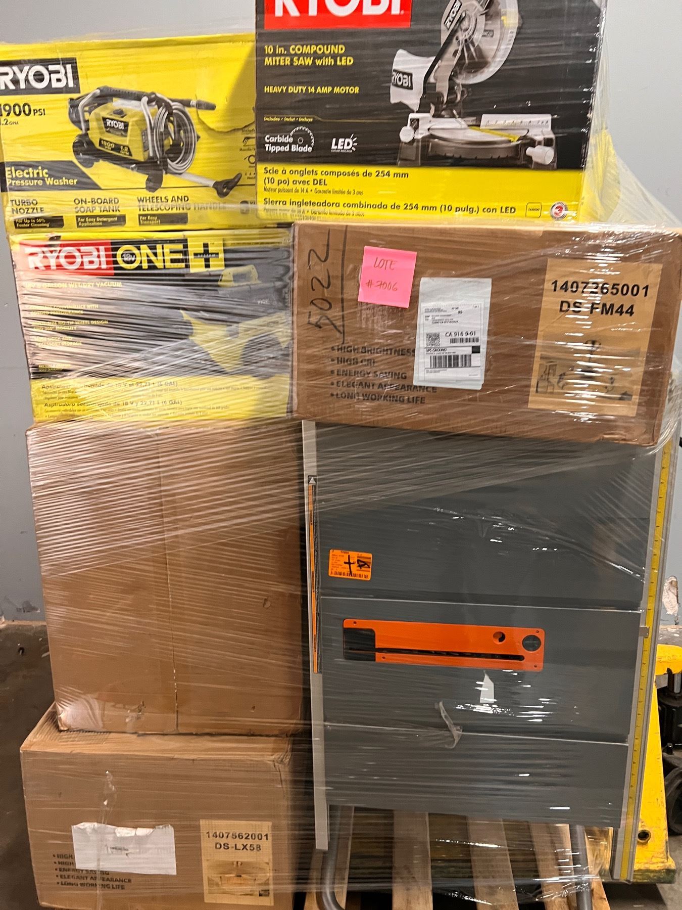Lote de Mercancia Home Depot. Herramienta y Home Improvements. todo lo que se muestra/encuentra en el pallet presente es clasificado como sobrecargo y retornos. Algunos productos sob usados, con piezas restantes e incluso nuevos.