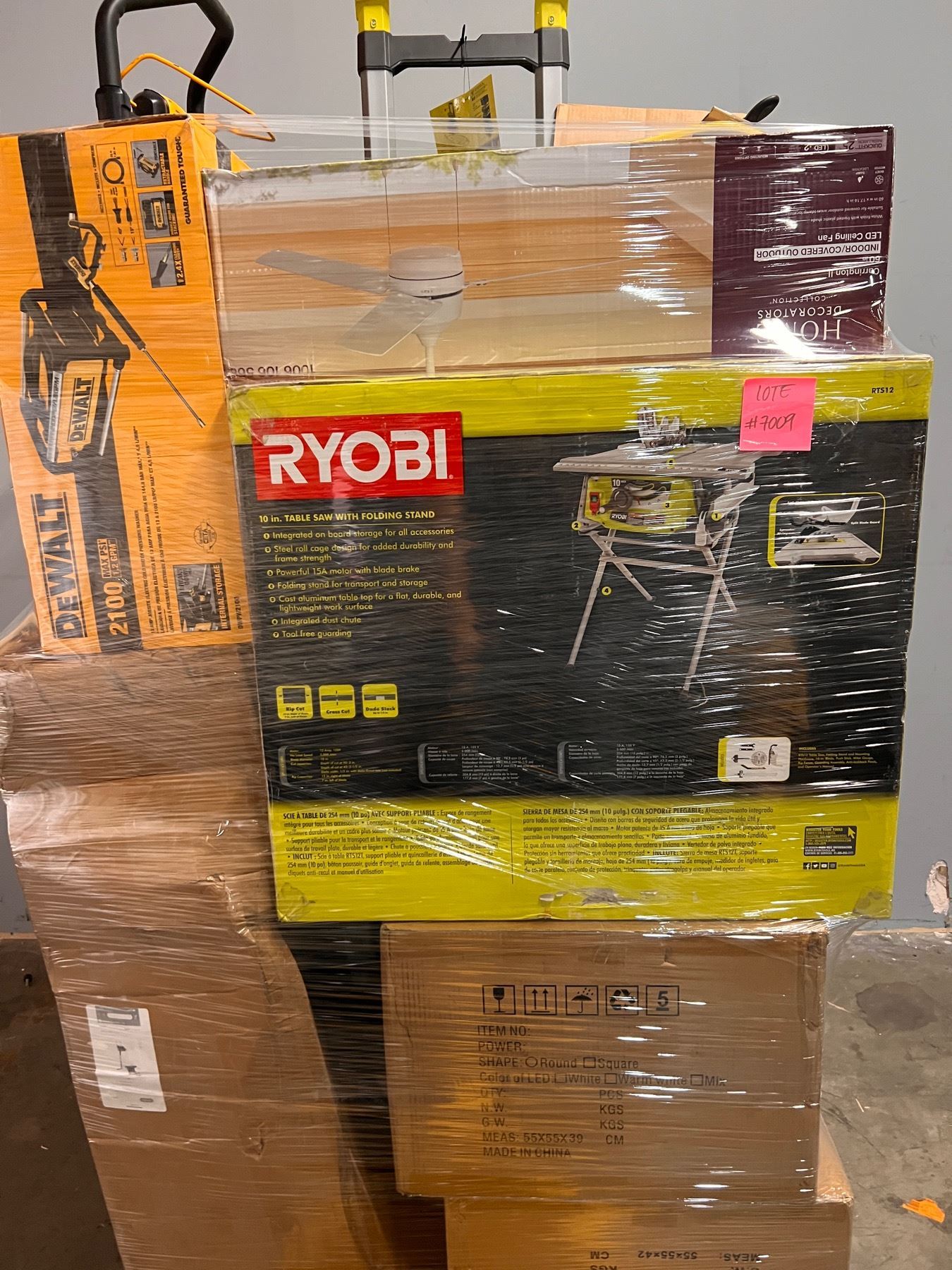 Lote de Mercancia Home Depot. Herramienta y Home Improvements. todo lo que se muestra/encuentra en el pallet presente es clasificado como sobrecargo y retornos. Algunos productos sob usados, con piezas restantes e incluso nuevos.