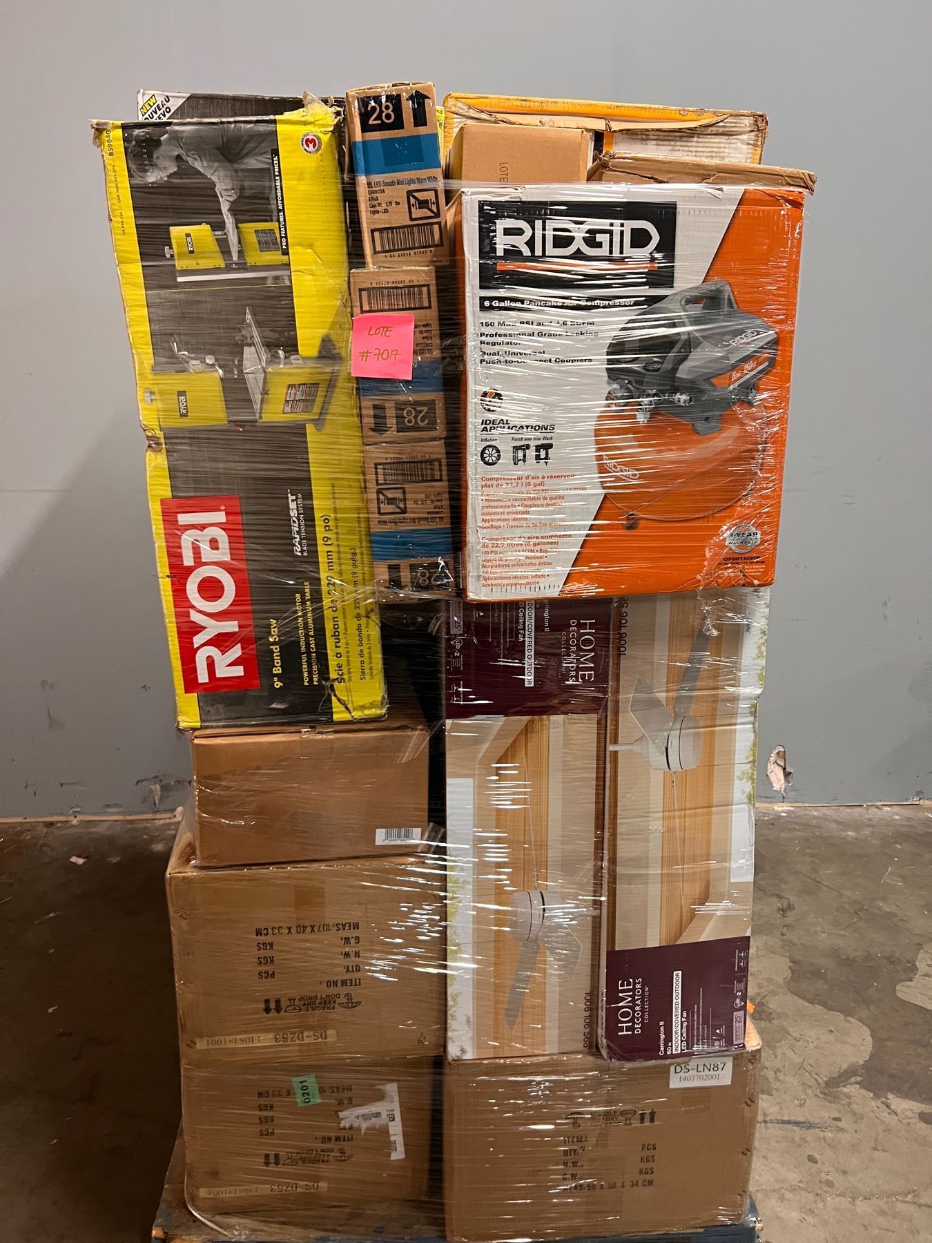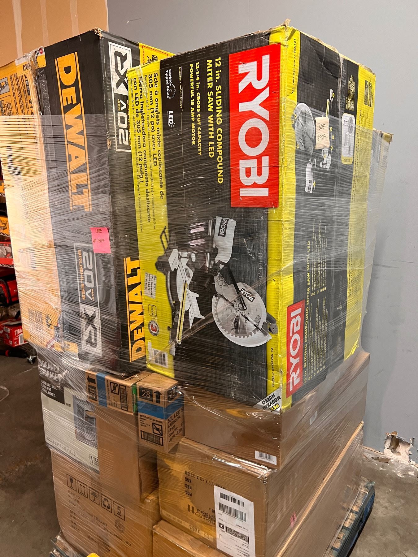 Lote de Mercancia Home Depot. Herramienta y Home Improvements. todo lo que se muestra/encuentra en el pallet presente es clasificado como sobrecargo y retornos. Algunos productos sob usados, con piezas restantes e incluso nuevos.