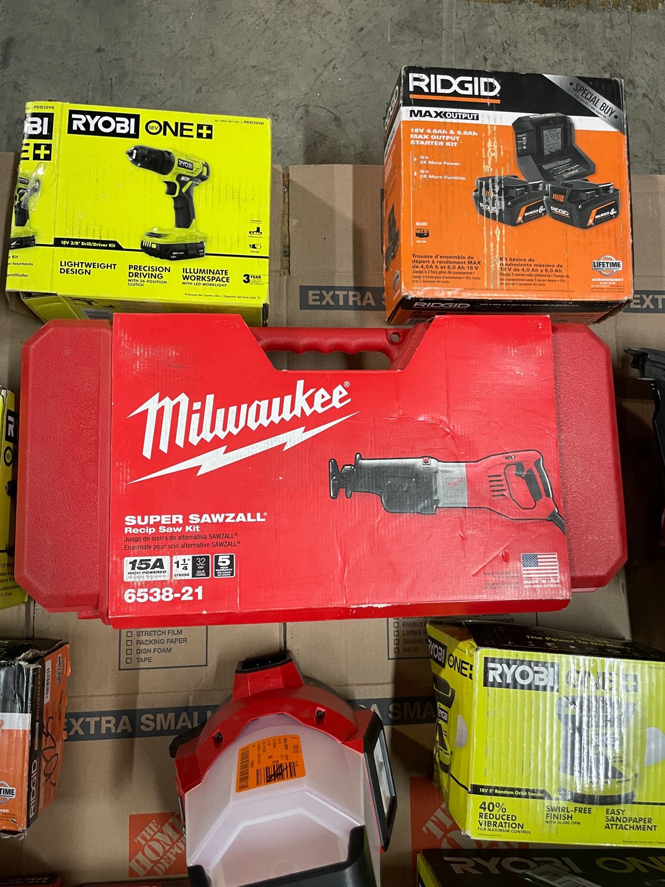 Lote de Herramienta Home Depot, clasificada como retornos lo cual alguno de los productos pueden venir usados, rotos eh incluso nuevos. Por favor de apostar con responsabilidad en cada uno de los lotes a los que participe.