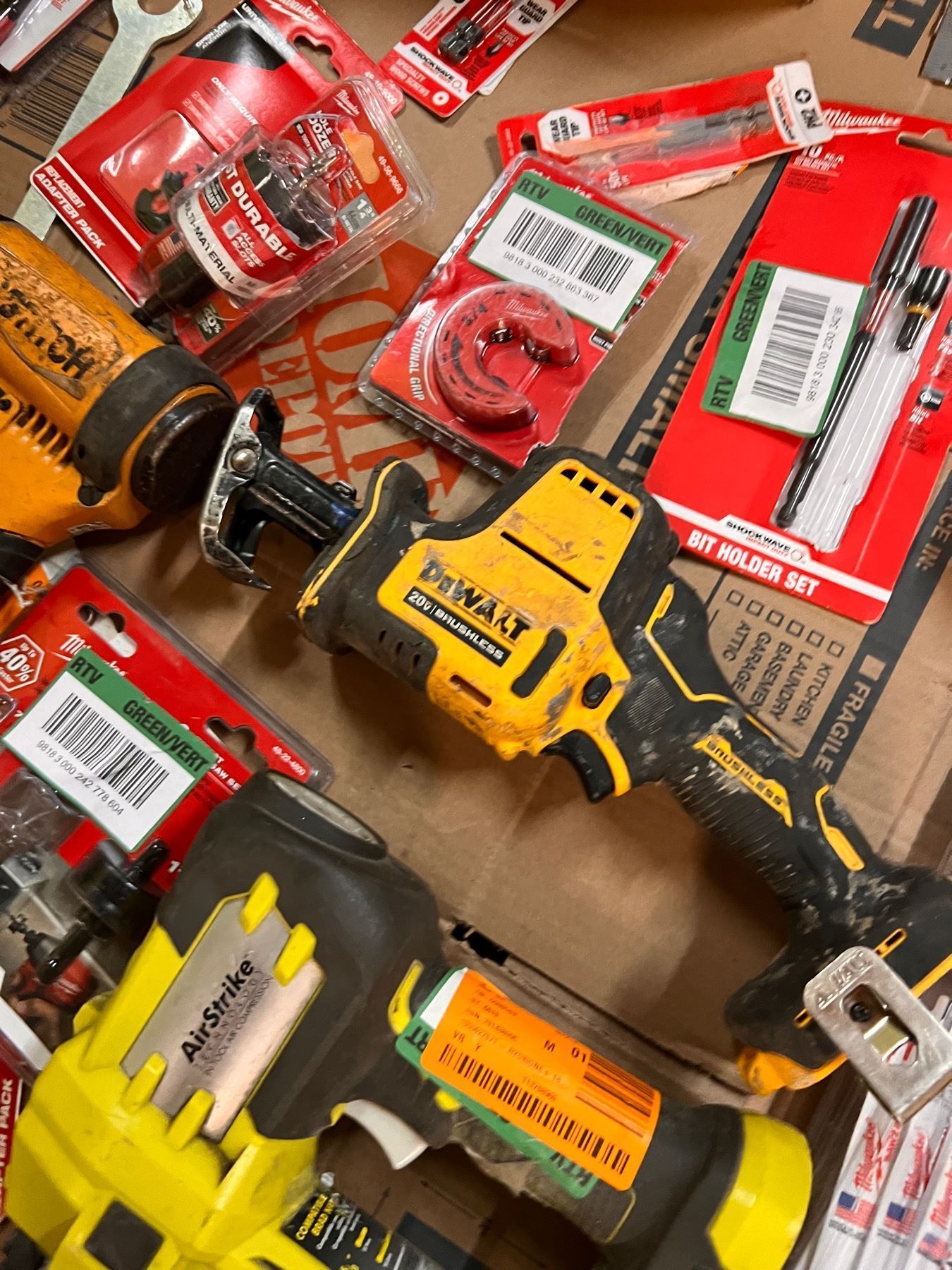 Lote de Herramienta Home Depot, clasificada como retornos lo cual alguno de los productos pueden venir usados, rotos eh incluso nuevos. Por favor de apostar con responsabilidad en cada uno de los lotes a los que participe.