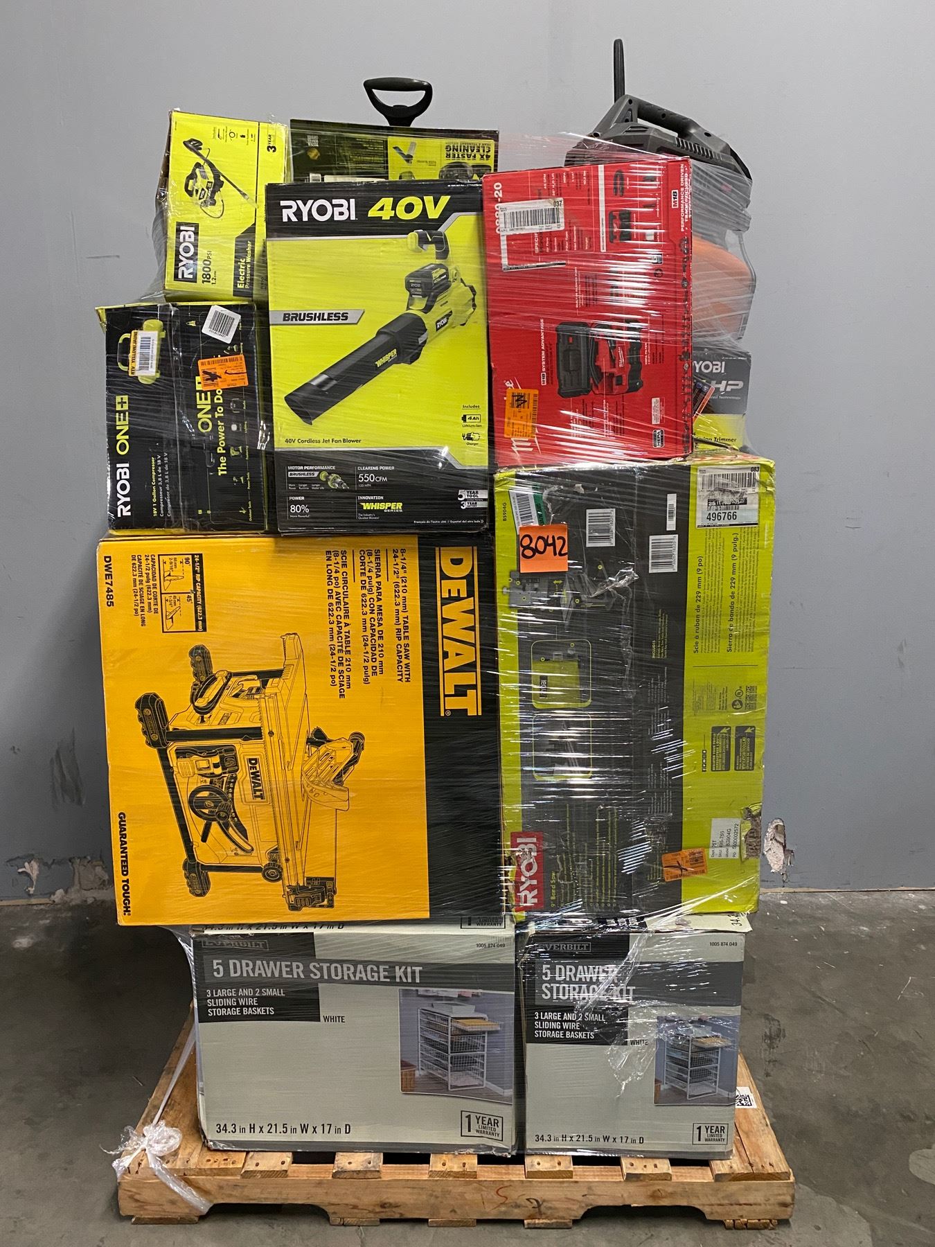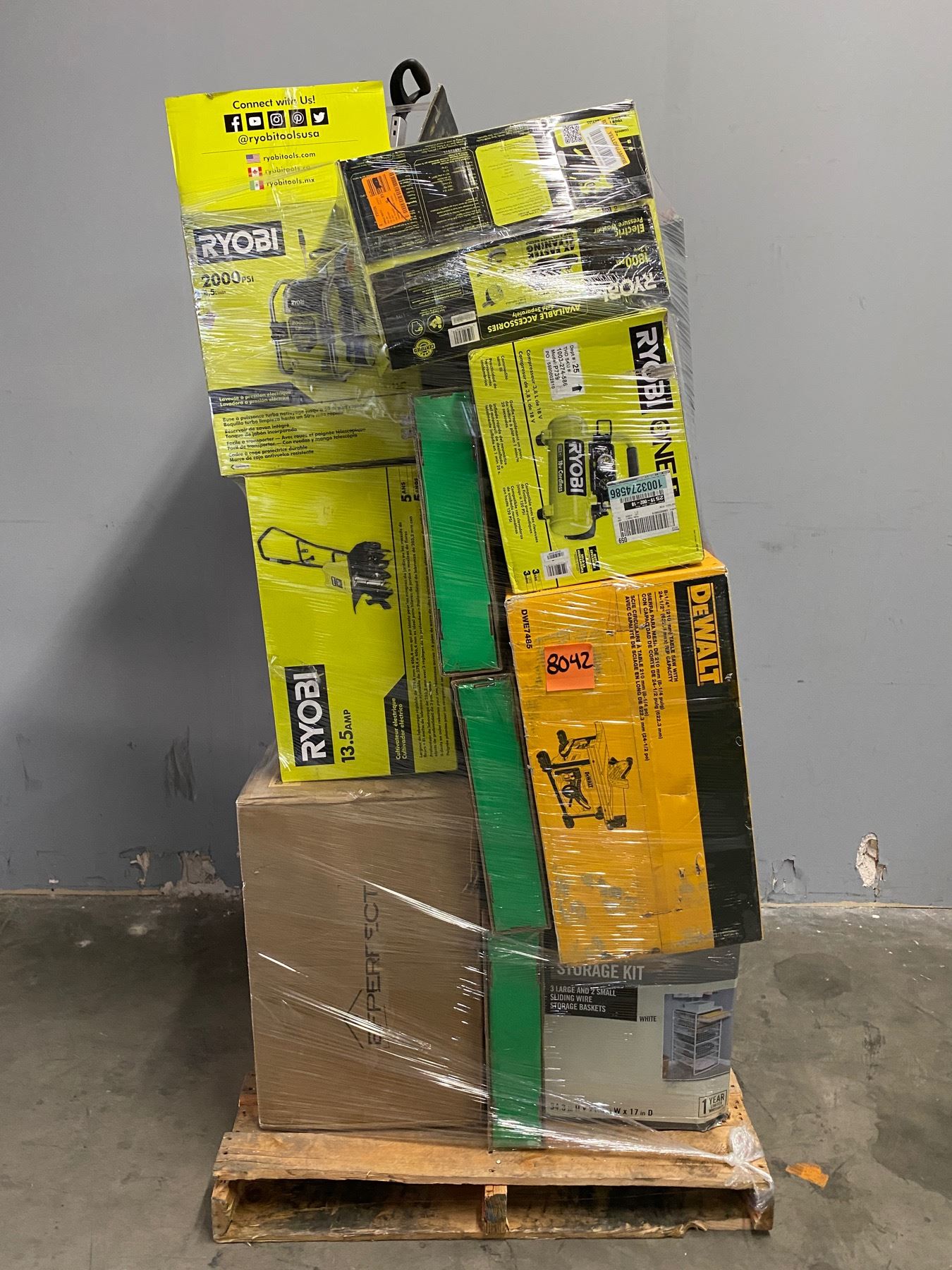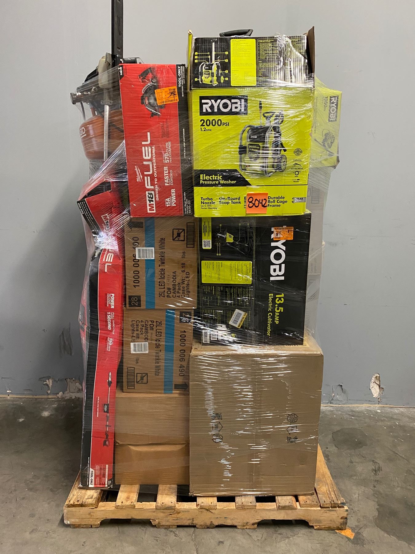 Lote de Mercancia Home Depot. Herramienta y Home Improvements. todo lo que se muestra/encuentra en el pallet presente es clasificado como sobrecargo y retornos. Algunos productos sob usados, con piezas restantes e incluso nuevos.