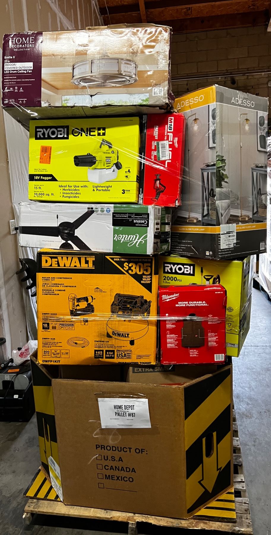 Pallet de Herramienta y Home Improvements de la tienda Home Depot. Todos los productos que pertenecen a este pallet son clasificados como retornos, liquidaciones y sobrecargos. Favor de apostar con responsabilidad. todas las ventas son finales.