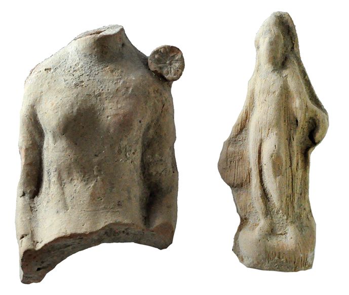 Lote de dos piezas (siglos IV-III a.C.). Terracota. Representa fragmento mujer y figura femenina de pie desnuda. Altura 10,0 y 10,5 cm.