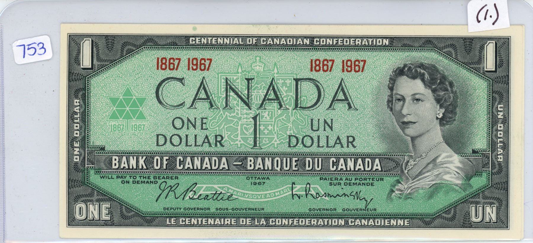 Lotof 2 1867-1967 canada $1, beattie/ rasminsky (1.)