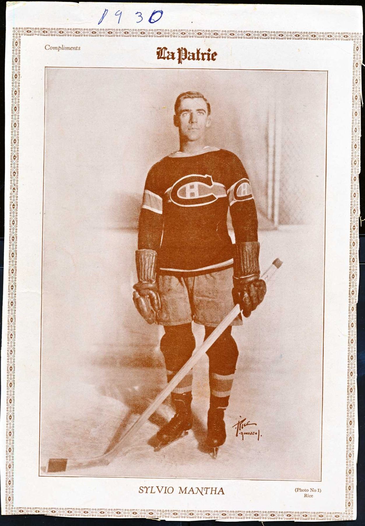 Lot of 14 vintage photos from 1930 to 1936 of the Montreal Canadiens photographed by Rice Montreal for the Patrie company, including Sylvio Mantha , Léo Dandurand , Newsy Lalonde , Didier Pitre , and Jack Laviolette, to name a few.