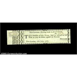 Lottery Ticket - New London, CT Meeting-House Lottery, 1787. An exceptionally high grade example with paper that is as nice as the day it was printed. Important notice: We expect to be auctioning lots at the rate of 200-250 per hour. Sometimes eBay Premier live bid software cannot keep up with that pace, so we strongly recommend that you place a realistic proxy bid now as insurance to avoid disappointment. Also please note that all Heritage/CAA lots purchased through eBay Premier carry a 20% Buyer's Premium. Please make sure you read the Terms and Conditions.