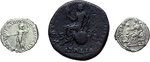 Lotti classici. Impero romano. Commodo (177-192). Lotto di 2 denari e un sesterzio da classificare. qBB:BB+.