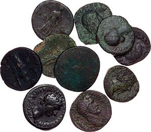 Lotti classici. Impero romano. Da Tiberio a Valeriano. Lotto di 10 monete (assi, 1 dupondio, 2 sesterzi) da classificare. AE. MB:qBB.