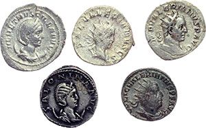Lotti classici. Impero romano. Lotto di 5 antoniniani d'argento da classificare. AG. Molto interessante. Include un antoniniano di Salonina raro in buon argento e di qualità eccellente per il tipo. qBB:BB+.