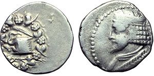 Lotti classici. Mondo greco. Lotto di due monete d'argento da classificare. Cistoforo (Mysia, Pergamo) e Tetradracma, Vardanes I (Parthia). qBB:BB+.