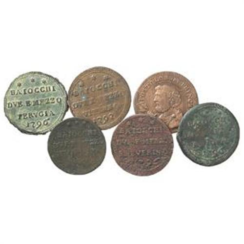 Lotti. Lotto di 6 sampietrini ( Ancona, Foligno, Perugia, Roma, Sanseverino e Viterbo ). AE.