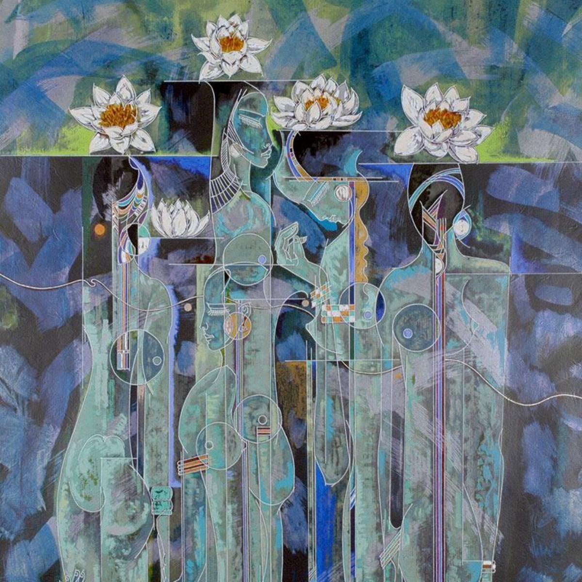 "Lotus" Limited Edition Serigraph on Rice Paper (39" x 38") by Renowned Artist Lu Hong, Numbered and