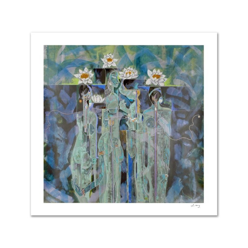 Lu Hong's work, collected worldwide, is often characterized by the use of vibrant colors and emotive lines. "Lotus" is a limited edition serigraph on paper, numbered and hand signed by the artist. Includes Certificate of Authenticity! Measures approx. 38" x 38" (with border), 33" x 32.5" (image).
