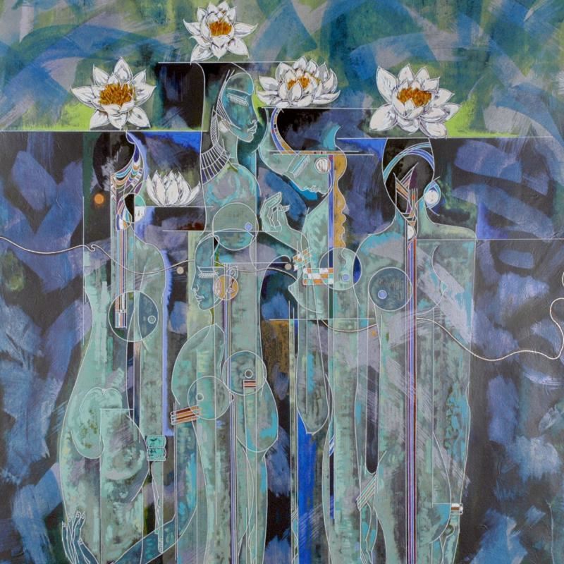 Lu Hong's work, collected worldwide, is often characterized by the use of vibrant colors and emotive lines. "Lotus" is a limited edition serigraph on rice paper, numbered and hand signed by the artist. Includes Certificate of Authenticity! Measures approx. 39" x 38" (with border), 33" x 32" (image).