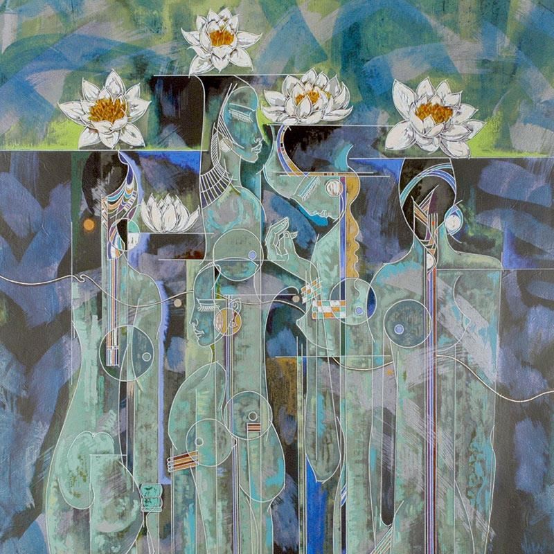 Lu Hong's work, collected worldwide, is often characterized by the use of vibrant colors and emotive lines. "Lotus" is a limited edition serigraph on paper, numbered and hand signed by the artist. Includes Certificate of Authenticity! Measures approx. 38" x 38" (with border), 33" x 32.5" (image).