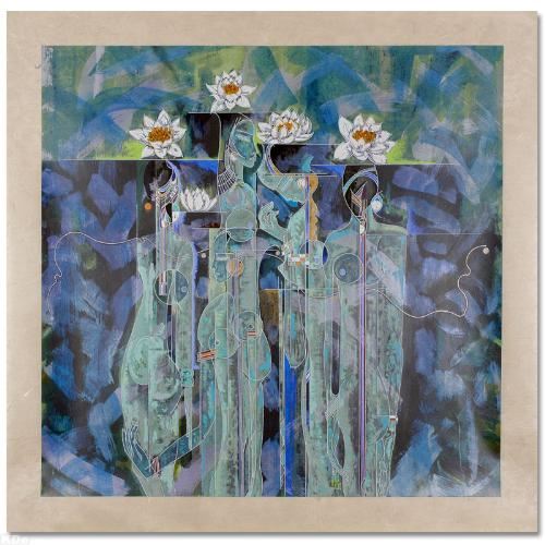 Lu Hong's work, collected worldwide, is often characterized by the use of vibrant colors and emotive lines. "Lotus" is a limited edition serigraph on rice paper, numbered and hand signed by the artist. Includes Certificate of Authenticity! Measures approx. 39" x 38" (with border), 33" x 32" (image).
